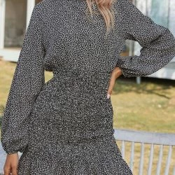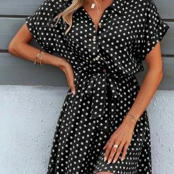 Anna-Kaci Womens Casual Dress Short Sleeves Button Up Polka Dot Printed Tie Waist Mini Dresses