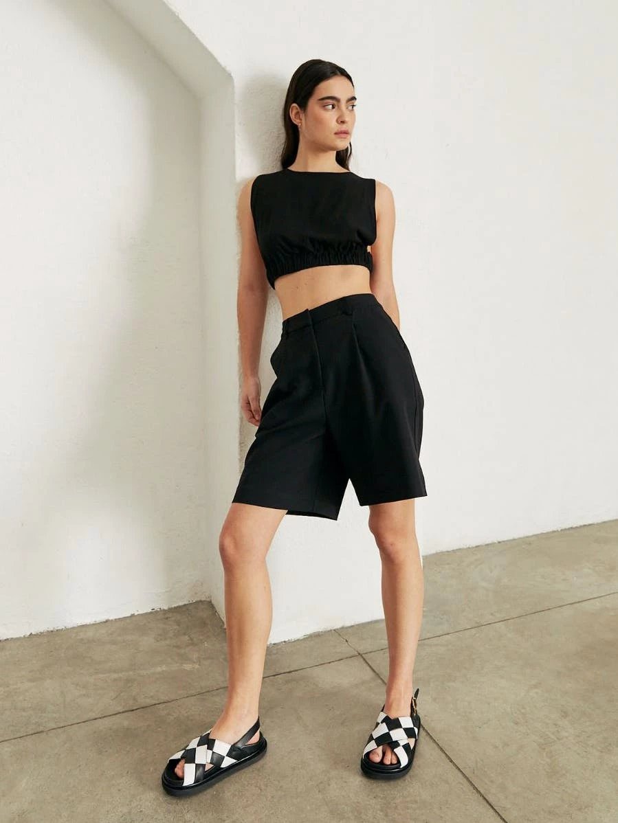 Relaxed fit, high-rise bermudas that you can easily dress up or down. Wear to the office with the matching vest or with a white-t for a more relaxed fit.