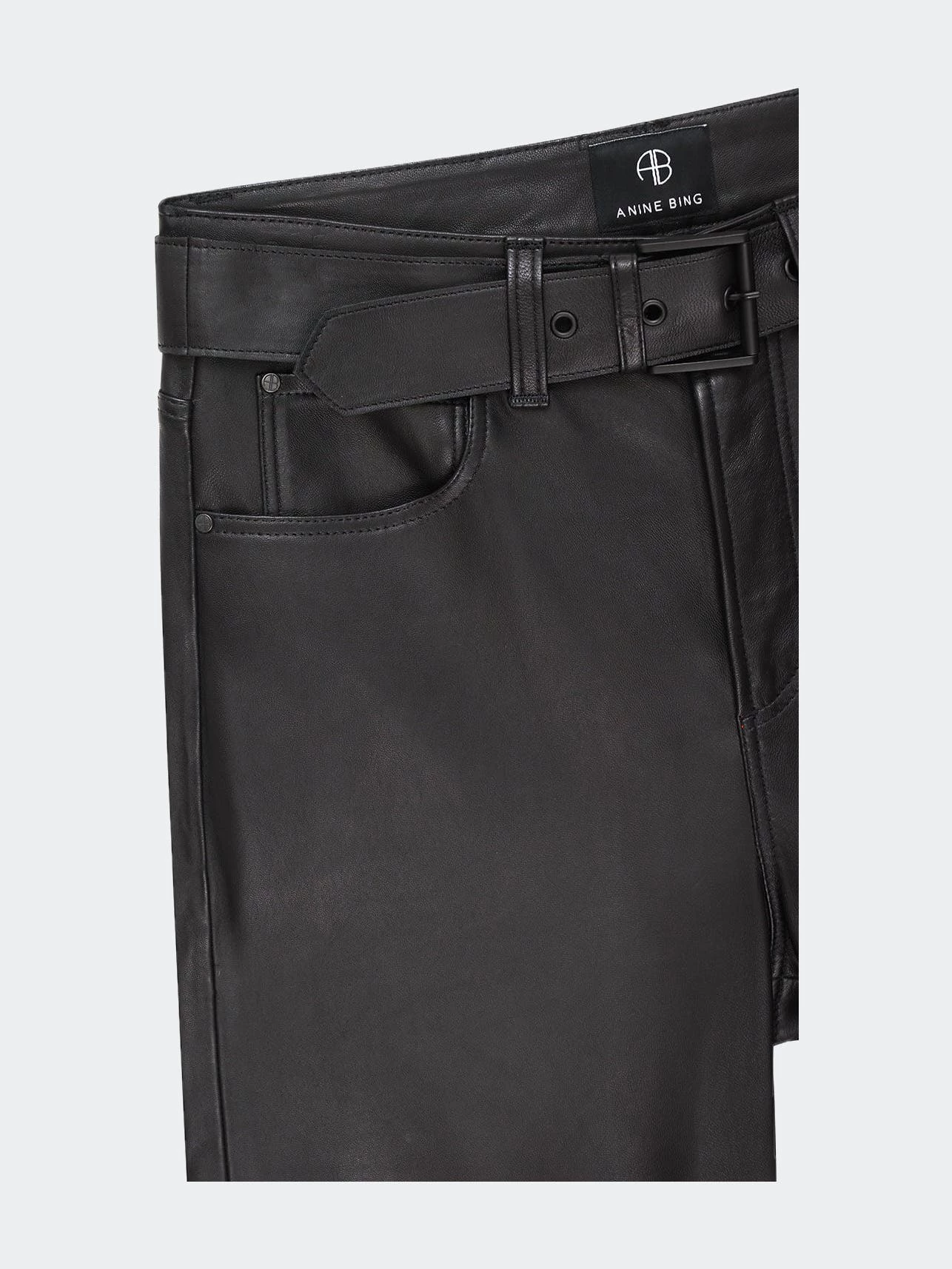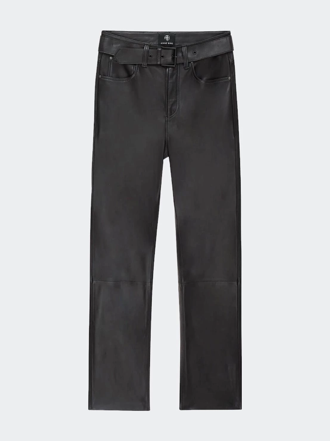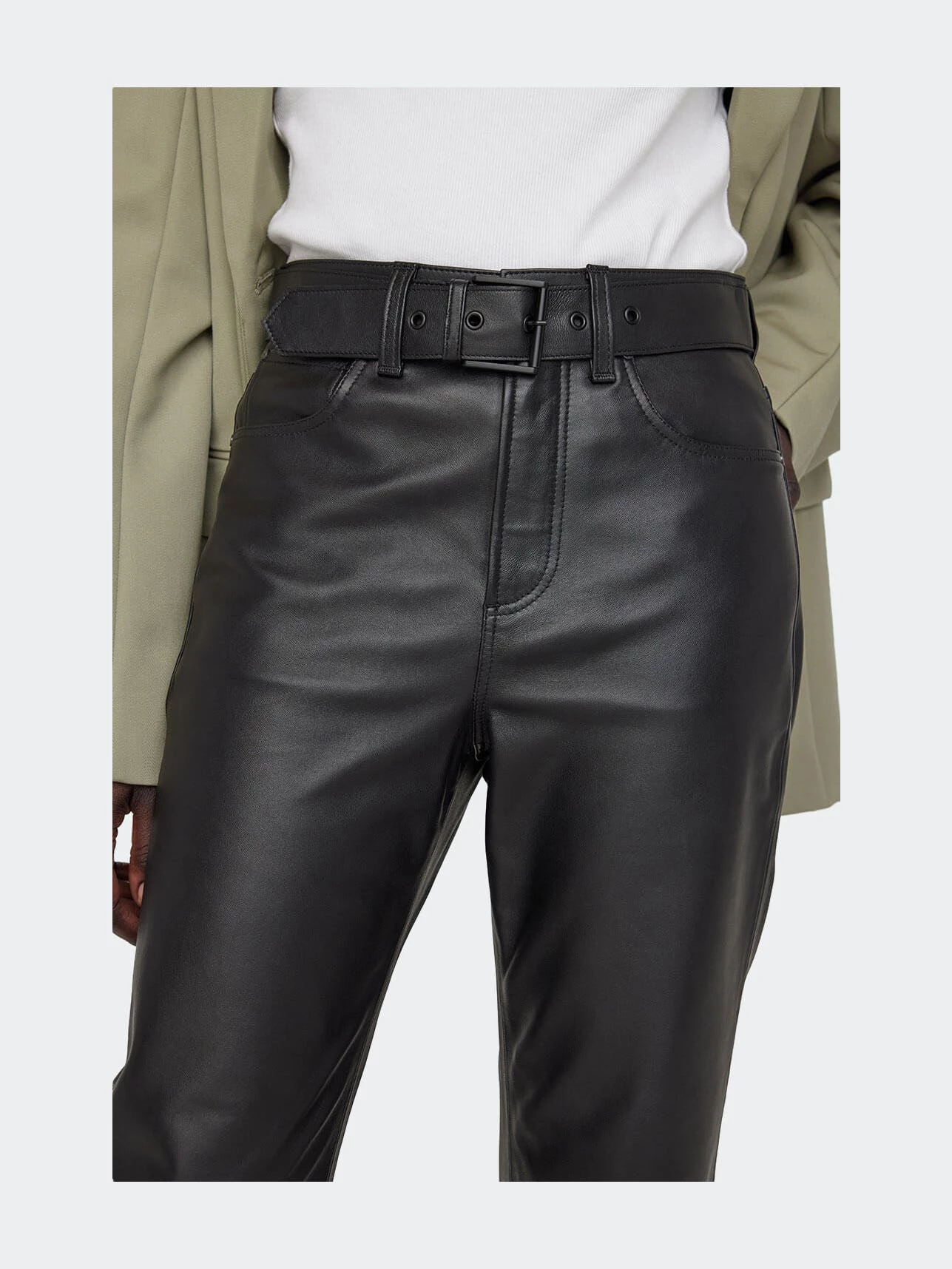 The best-selling Connor Pant is cut from unlined leather and features a slouchy, slightly relaxed silhouette with subtle moto-inspired details. This style includes an adjustable leather waistbelt for a customizable fit. The Connor Pant is a high-waisted, slim-straight style cut for a slightly slouchy fit. Take your true size.