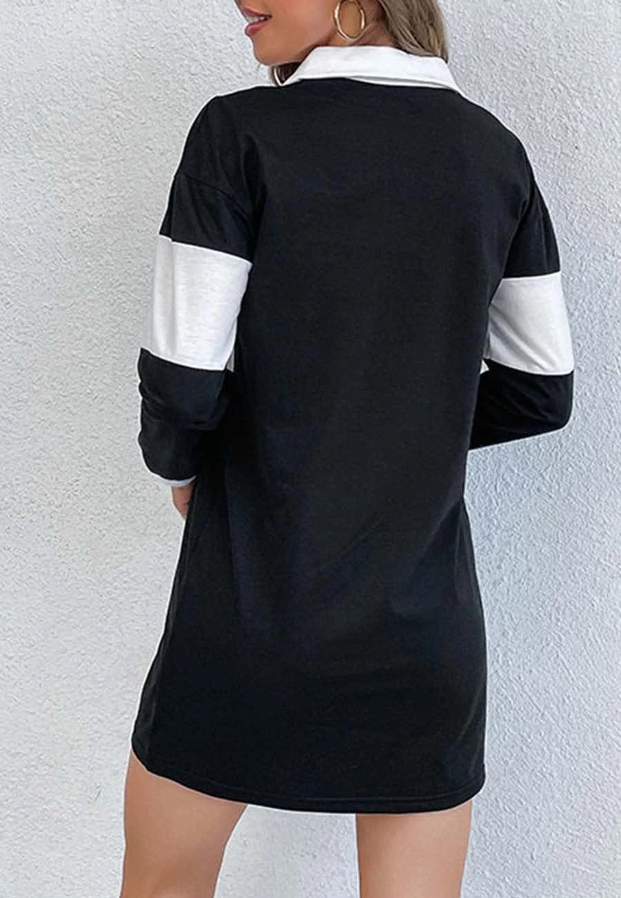 The Anna-Kaci Dress is detailed with a classic collar. Features a two tone design, long sleeves, shift dress silhouette and above knee length. Pair it with combat boots and a shoulder bag for a fabulous look.
