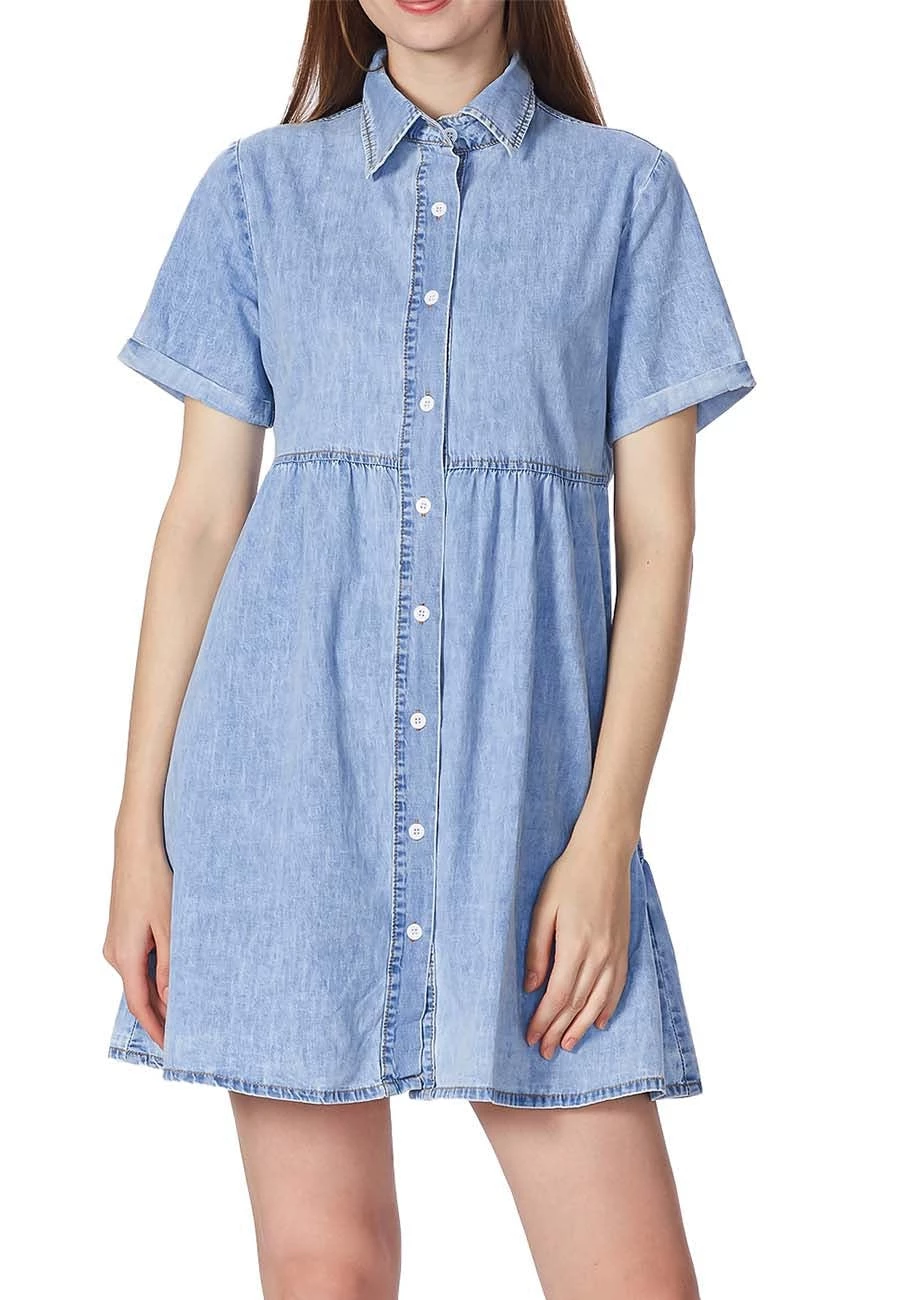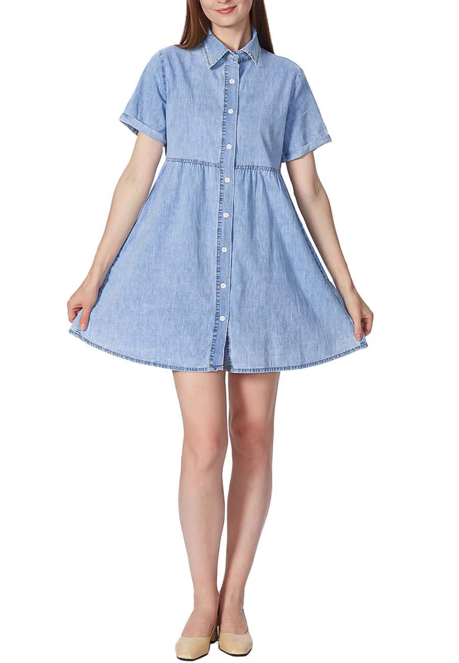 This Lapel Collar Denim Dress is made of denim fabric which is breathable, lightweight, soft, and comfortable. This Button Down Dress for women gives you a wonderful experience all day.This Short Sleeve Jean Dress for women is perfect to match with hoop earrings, a mini necklace, a simple bangle bracelet, a highland bag, a hat, leggings, sandals, heels, boots, etc.Occasions: A Denim Babydoll Dress above knee length is suitable for most events like casual wear, school, party, outdoors, street, holidays, vacations, beaches and womens summer dresses casual. This denim dress for women a must-have piece for your wardrobe.