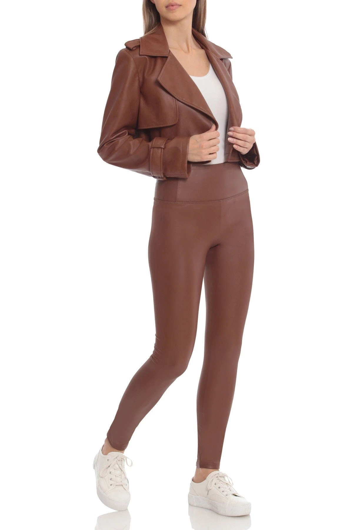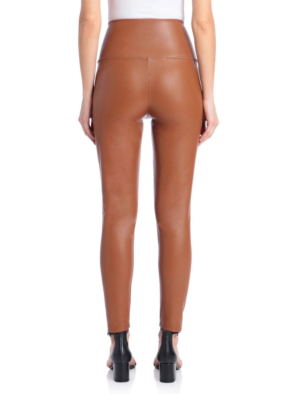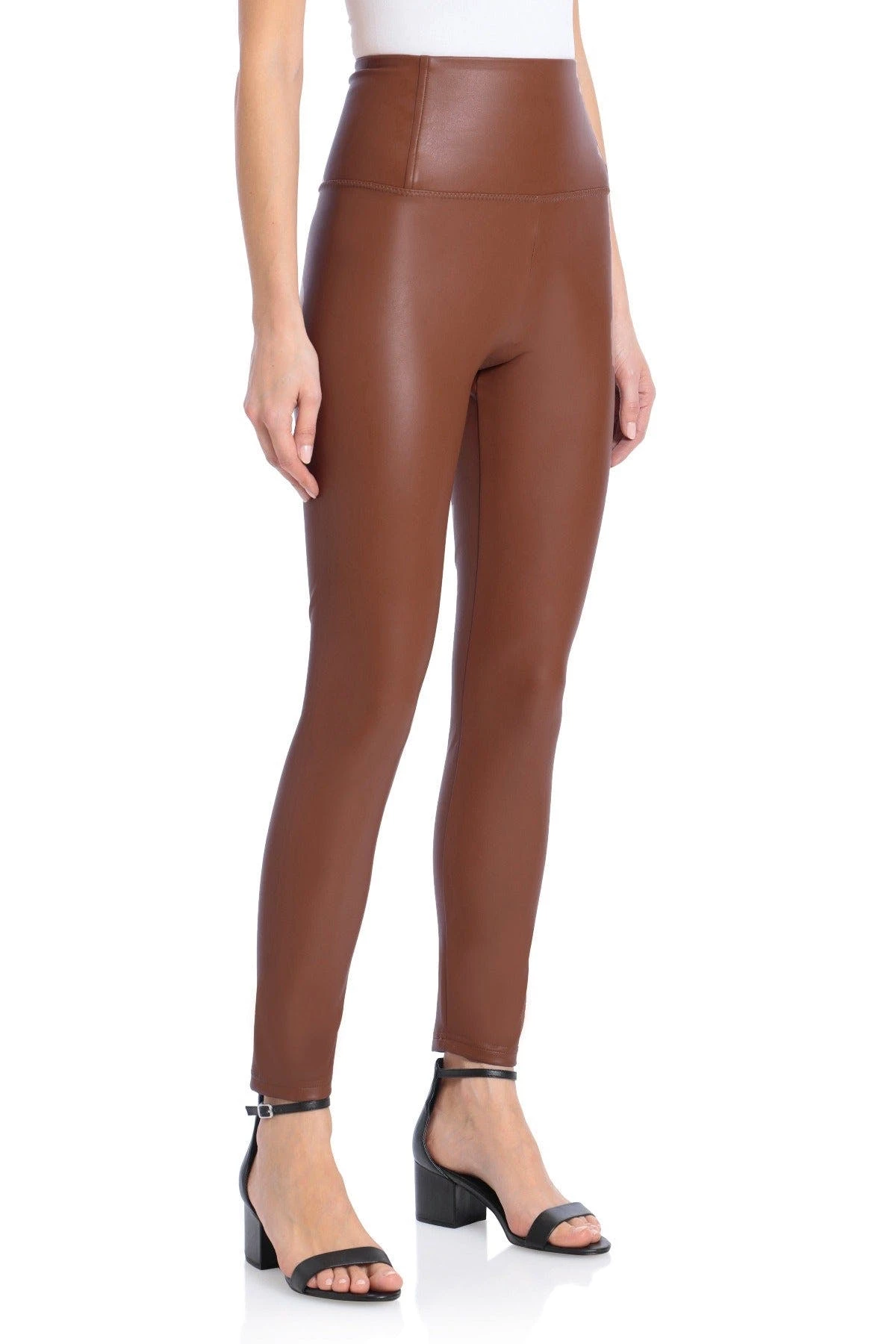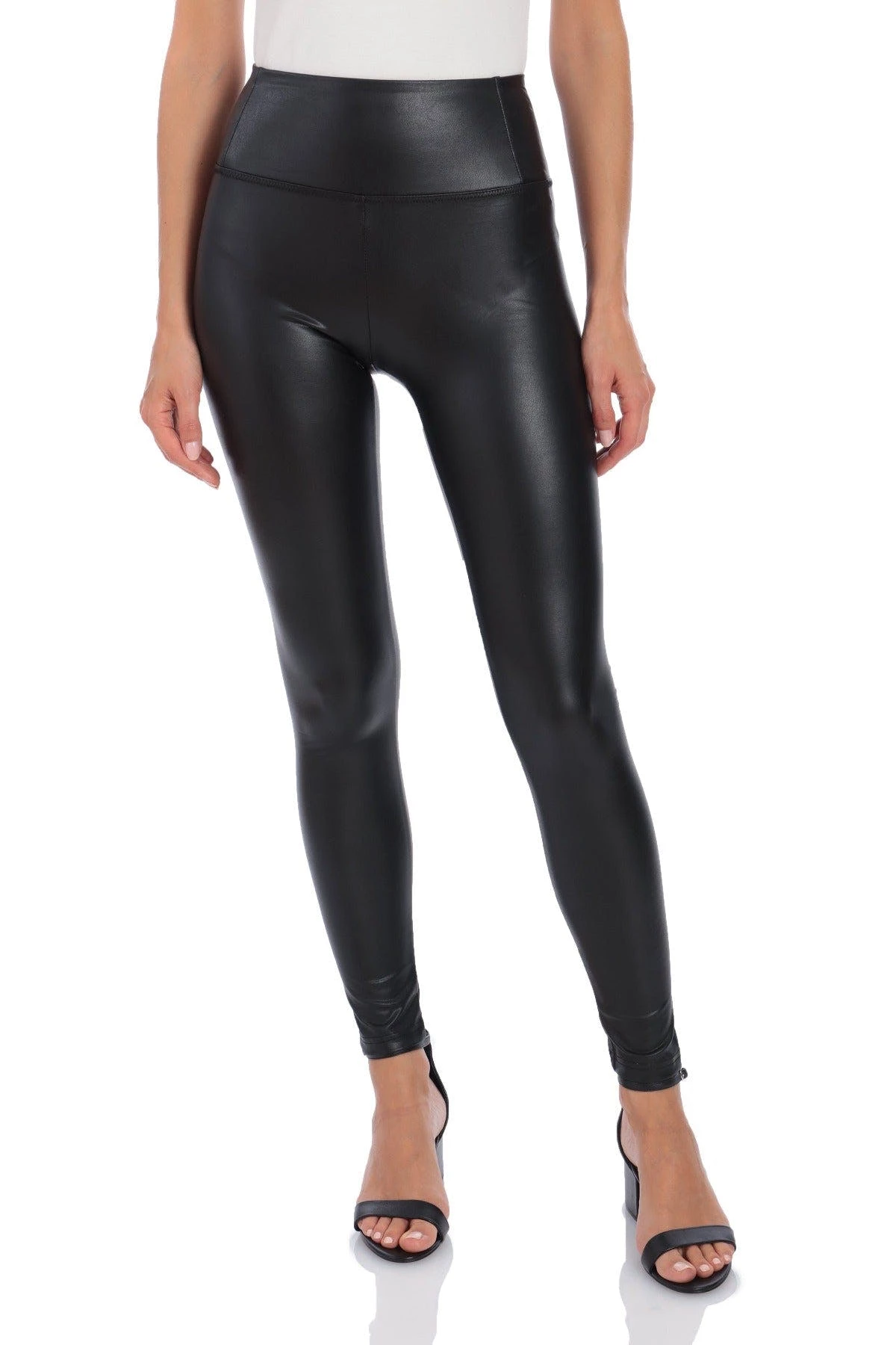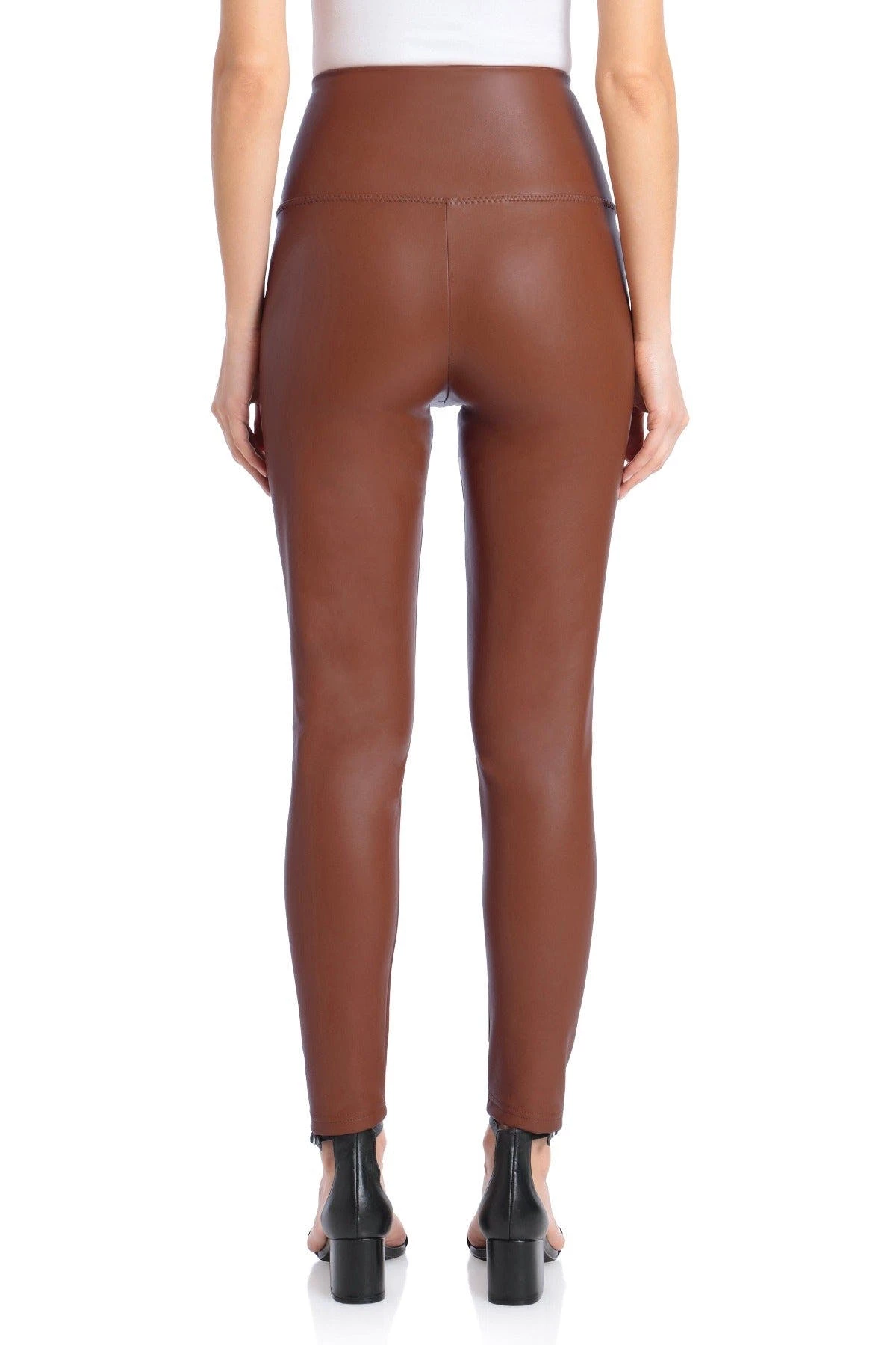 Stretchy faux leather conforms to every curve in a high-waisted pull-on legging by bagatelle.