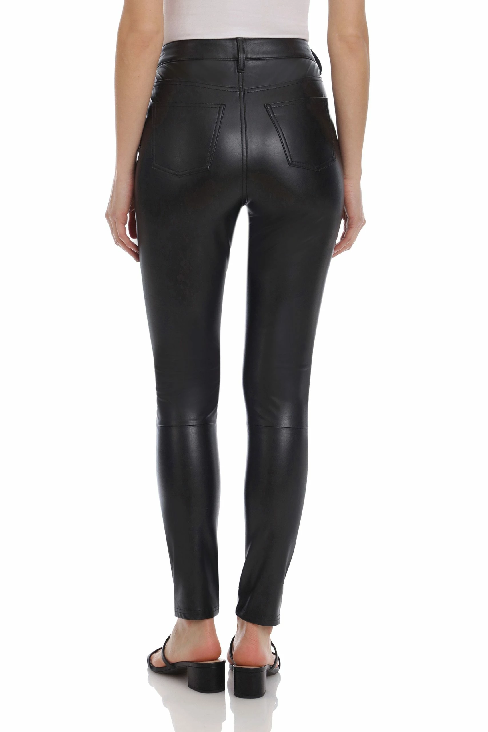 Second skins. Featuring a high-rise and a skinny fit, the vegan leather 5-pocket pant flatters every figure.