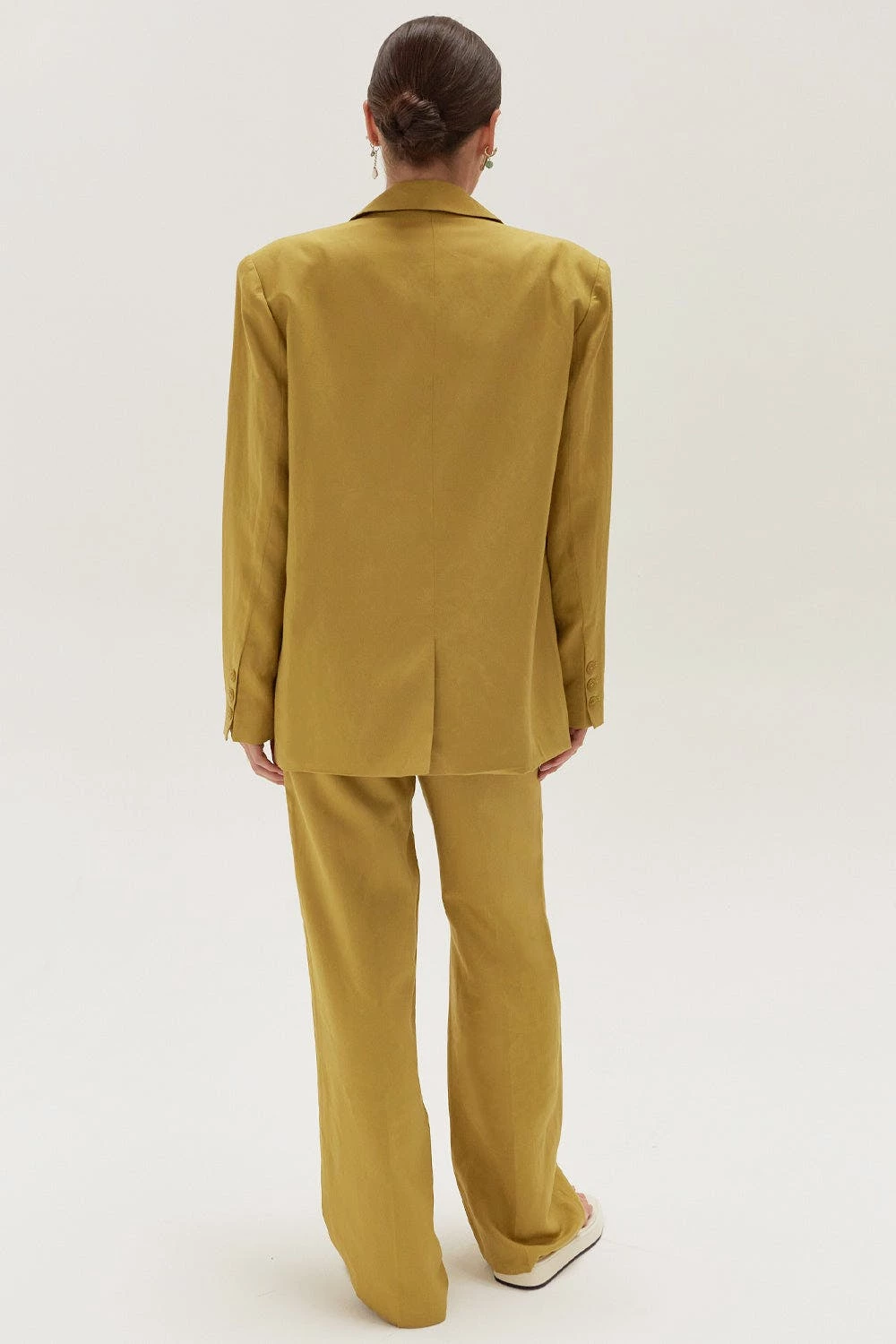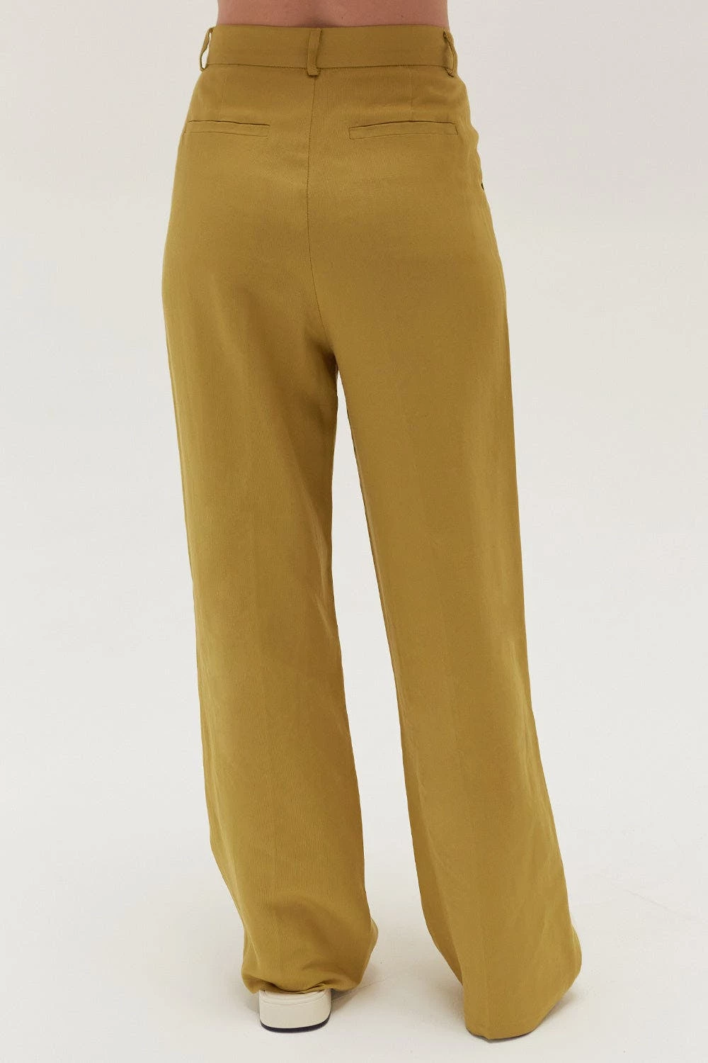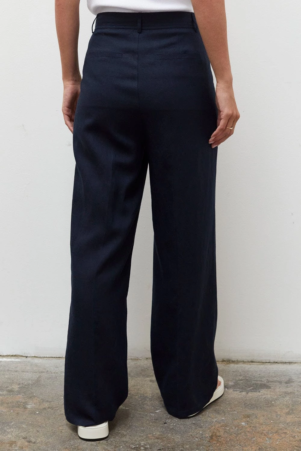 These are high-rise, wide leg trousers with single flap pocket detail at front. Made with lightweight, breezy rayon-linen blend material perfect for warmer days ahead. Pair it with the matching Jules Oversized Blazer for a clean, simple look.