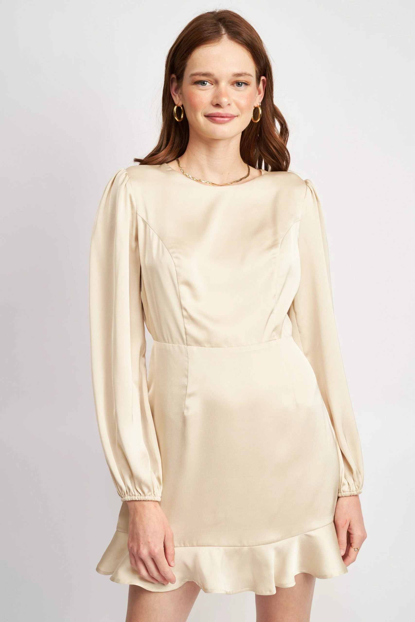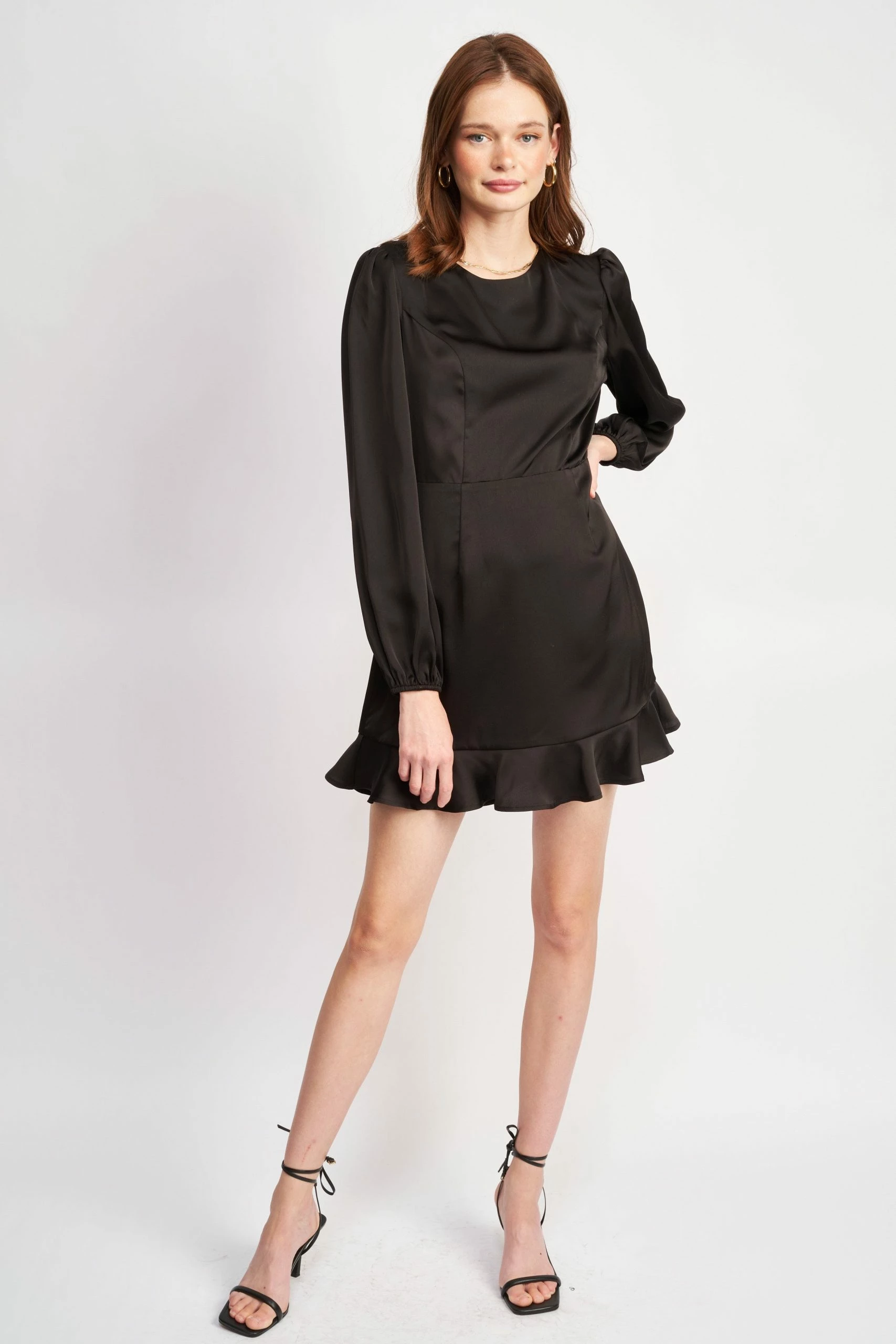 – Long sleeve woven dressModel Measurements:- Model wears size Small- Model’s height: 5’9″