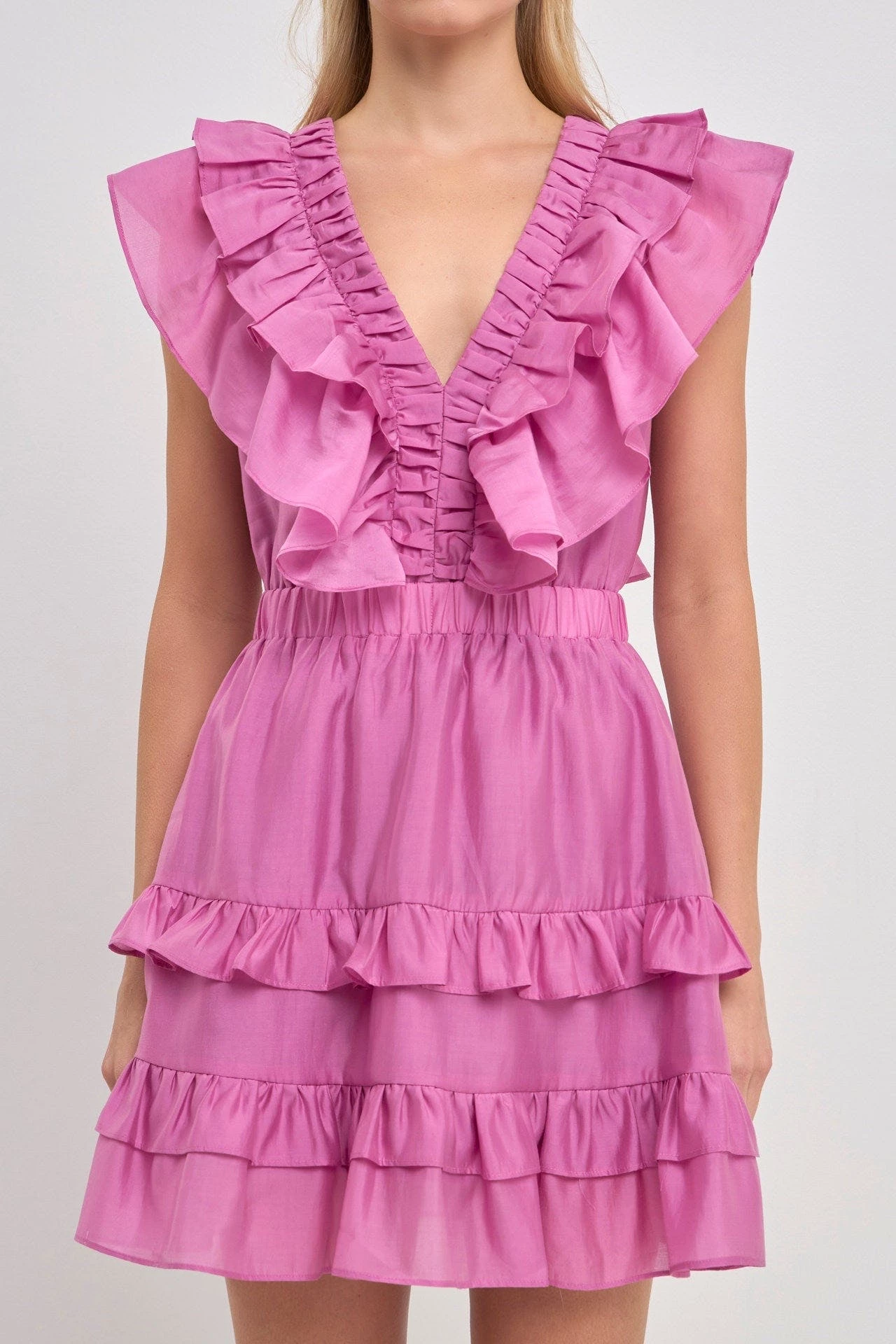 Featuring lavish color and lovely ruffles, this endless rose mini dress is a piece with day to night potential. Team it up with tonal heels to complete your look.