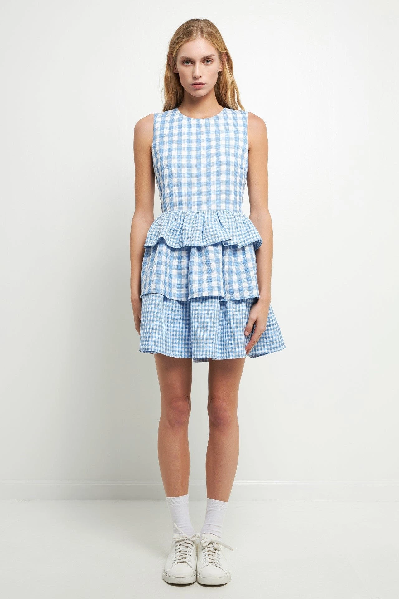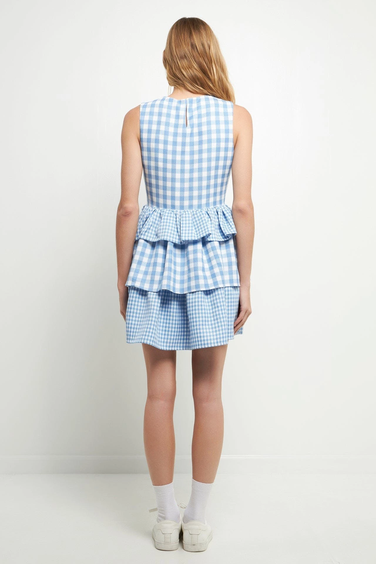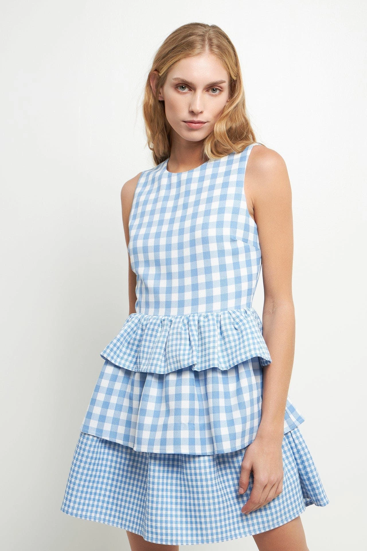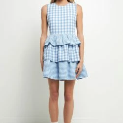 This playful Mini Dress features multi-sized gingham patterns and a tiered skirt that’ll make you want to dance around. The side zipper ensures a secure fit and makes taking the dress on and off easy. Pair this mini dress with your favorite sweater and you’re ready for church work a birthday lunch and whatever else you have planned for the day.