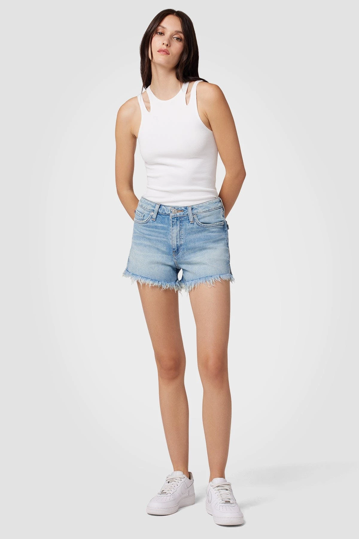 Featuring our signature flap back pocket, the croxley high-rise short is a warm-weather staple that hits right above mid-thigh. The medium indigo motion wash is gently faded and cut from premium stretch denim.