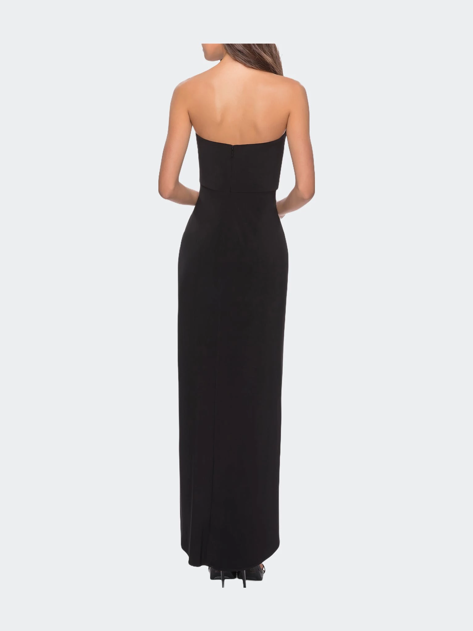 Head turning sequin slip dress with long sleeves and a high neckline. This effortless homecoming design features a V shaped back.