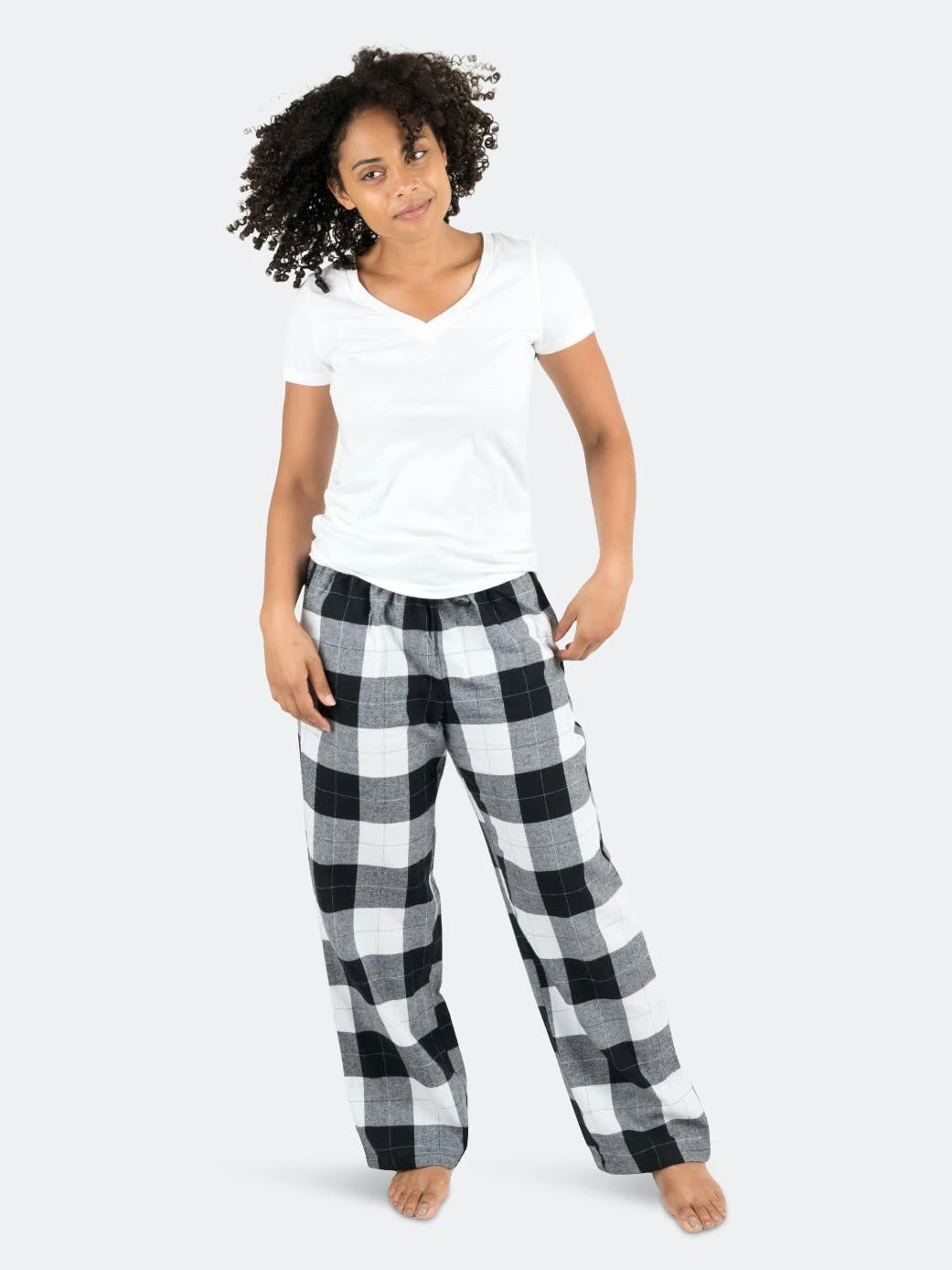 The Women’s Black & White Plaid Flannel Pants are not only festive for any holiday season but will comfortably match with other pajamas. Any woman will be appealed by the unique black and white plaid pattern, along with its cozy 100% cotton makeup. Every imported product comes with a loose fit at the ankles to complement the breathable elastic waistband. Pants also include tagless labels to protect any exposed skin and are machine wash cold inside out. Women are guaranteed to find the size right for them, as we offer X-Small to XX-Large. Matching with other similar family sets will be effortless in the Women’s Black & White Plaid Flannel Pants, and those family celebrations are sure to be memorable!