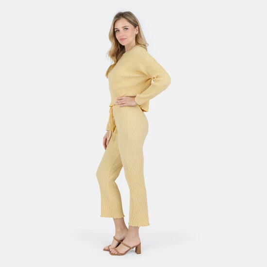 The fiona sets feature our cozy organic cotton waffle fabric. This unique fabric mixes texture with comfort. St retchy waffle-knit pull-on pants that flaunt your figure and end in ’90s-inspired lettuce-edge hems.