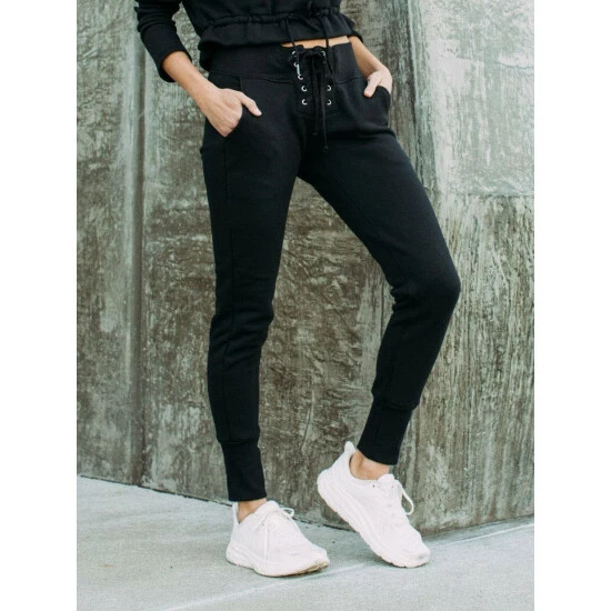 The Kelly Sweatpant combines our classic French Terry Organic Cotton sweat fabric with a stylish lace-up front closure detail.