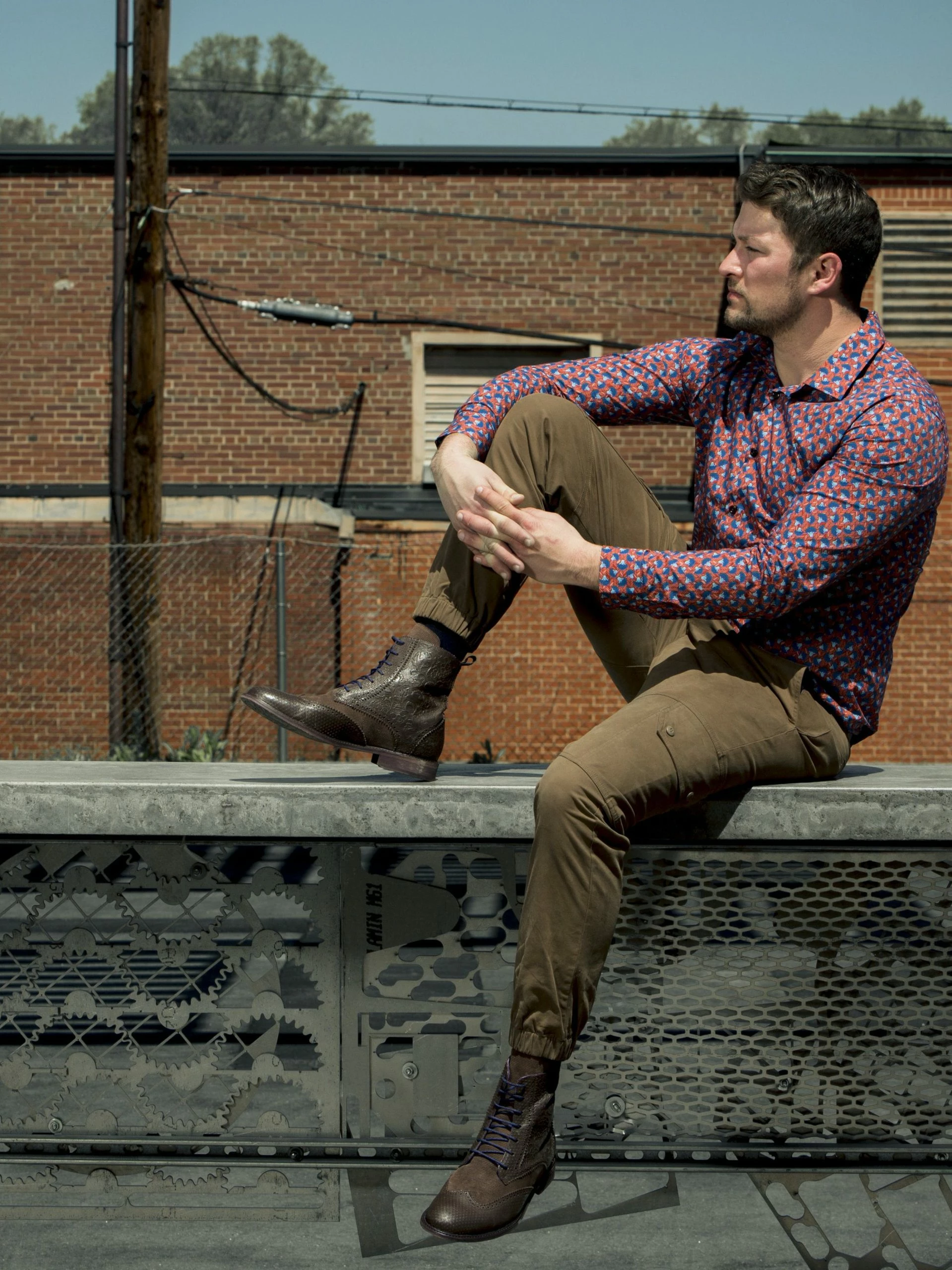 – Justin is wearing these pants with the Nigel shirt in Brocolini Chevron Lava