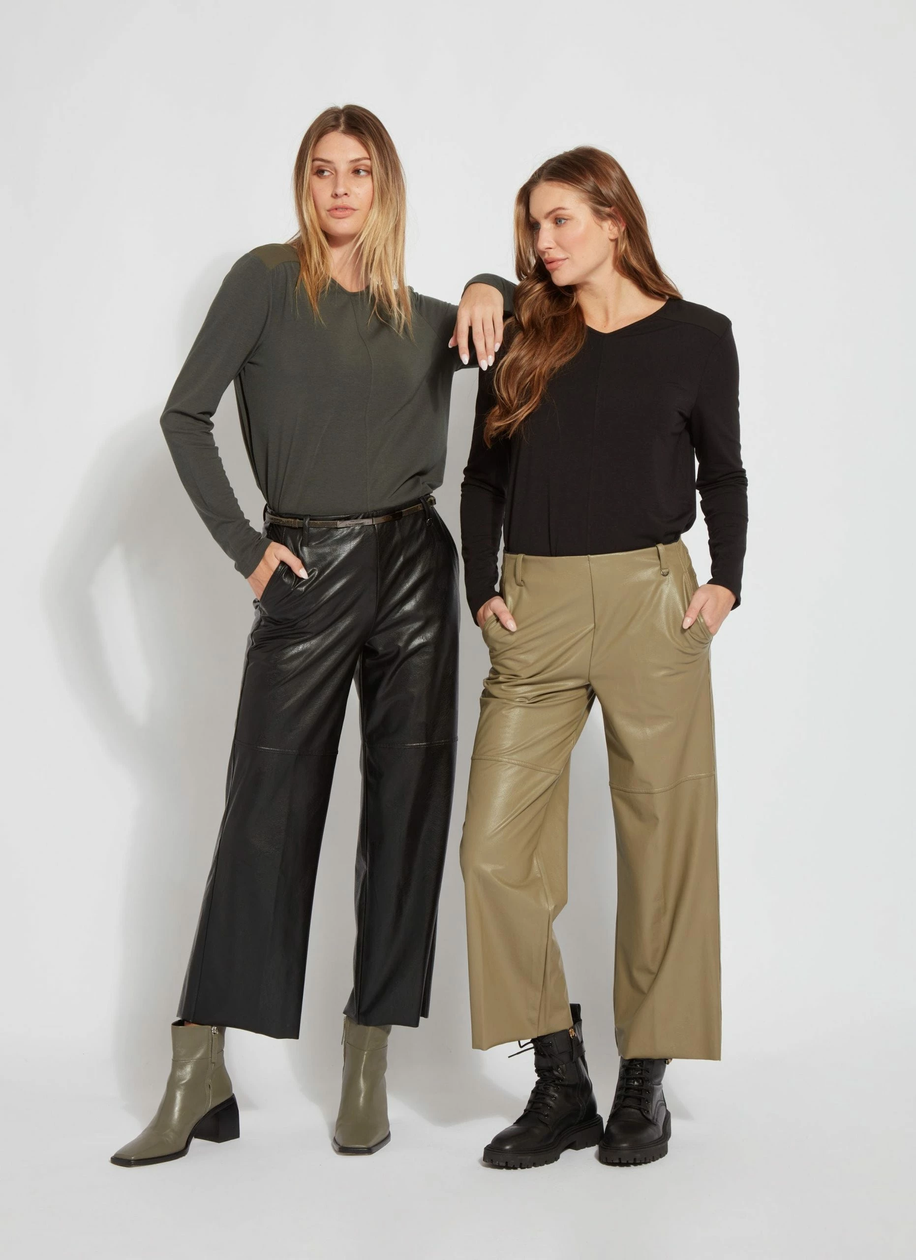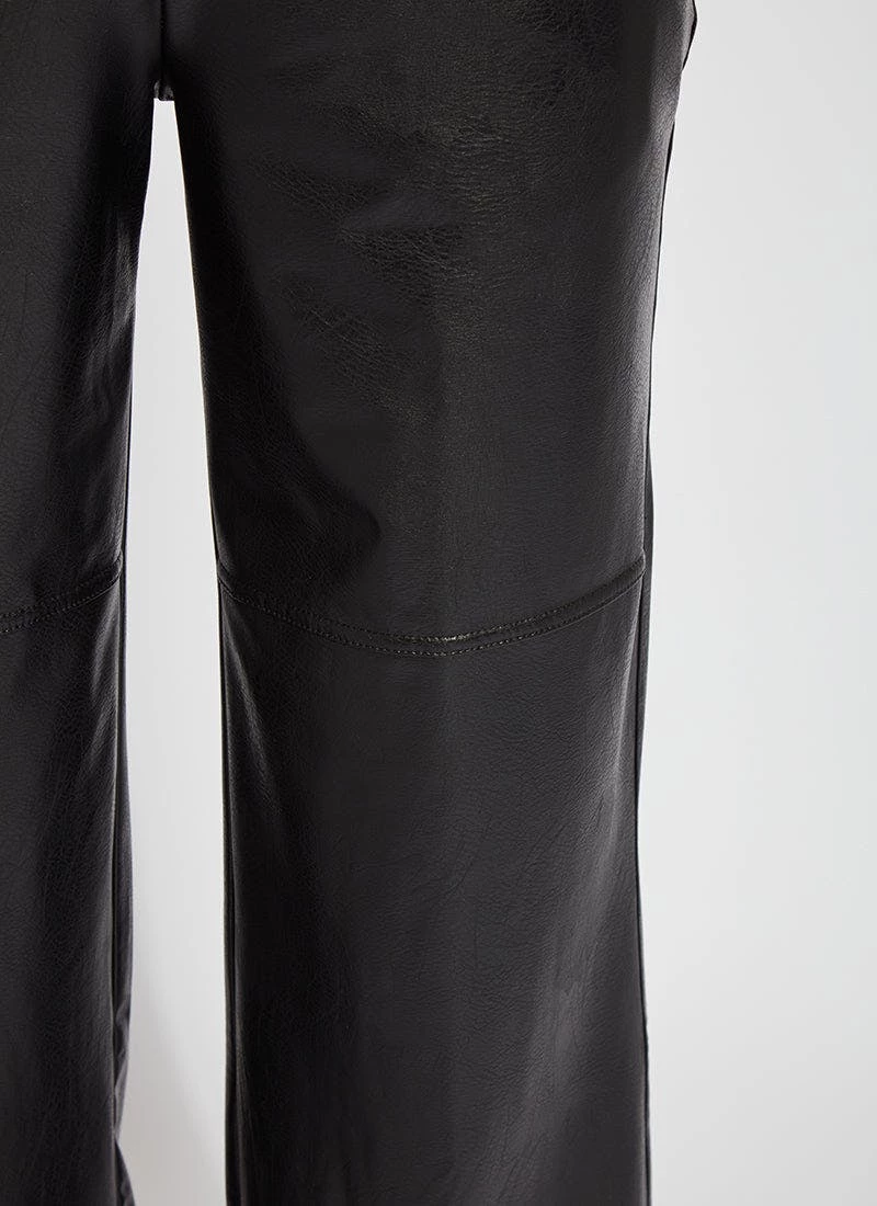 Aimee vegan pant, crafted from lightweight textured faux leather, is an ankle-length, straight-legged pant with side-seam pockets, beltloops, back waist seam and concealed patented waistband. Simple to hem thanks to raw edges, these faux leather pants deliver 4-way stretch for comfort and easy care. Pull them on with a cheetah print top, slouchy bomber jacket and sleek ankle boots.
