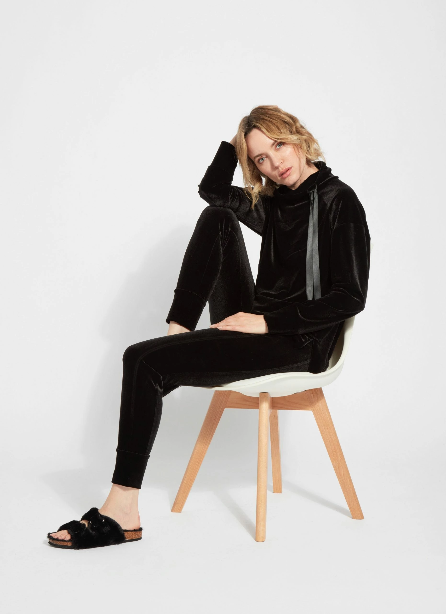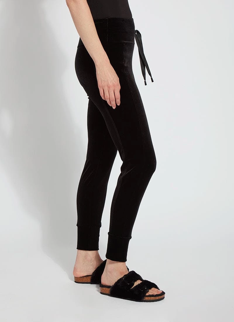The Quinn Lounge Jogger fits like a legging but features jogger-like detailing, including a wide waistband with a satin drawstring, longer cuffs, and parallel seams along the sides of each leg. Made from Stretch Velvet, these legging-joggers feature pull-on styling and a body-hugging fit. For the ultimate in elevated coziness, showcase them with the matching Quinn Lounge Sweatshirt and sneakers.