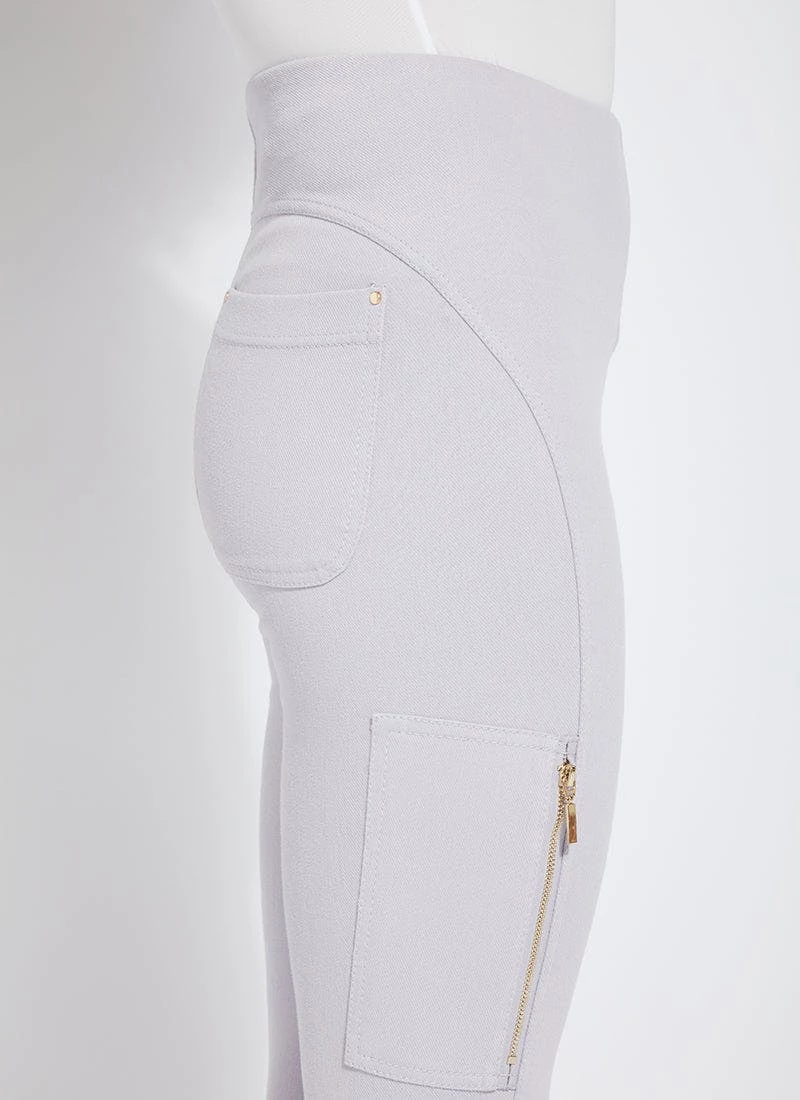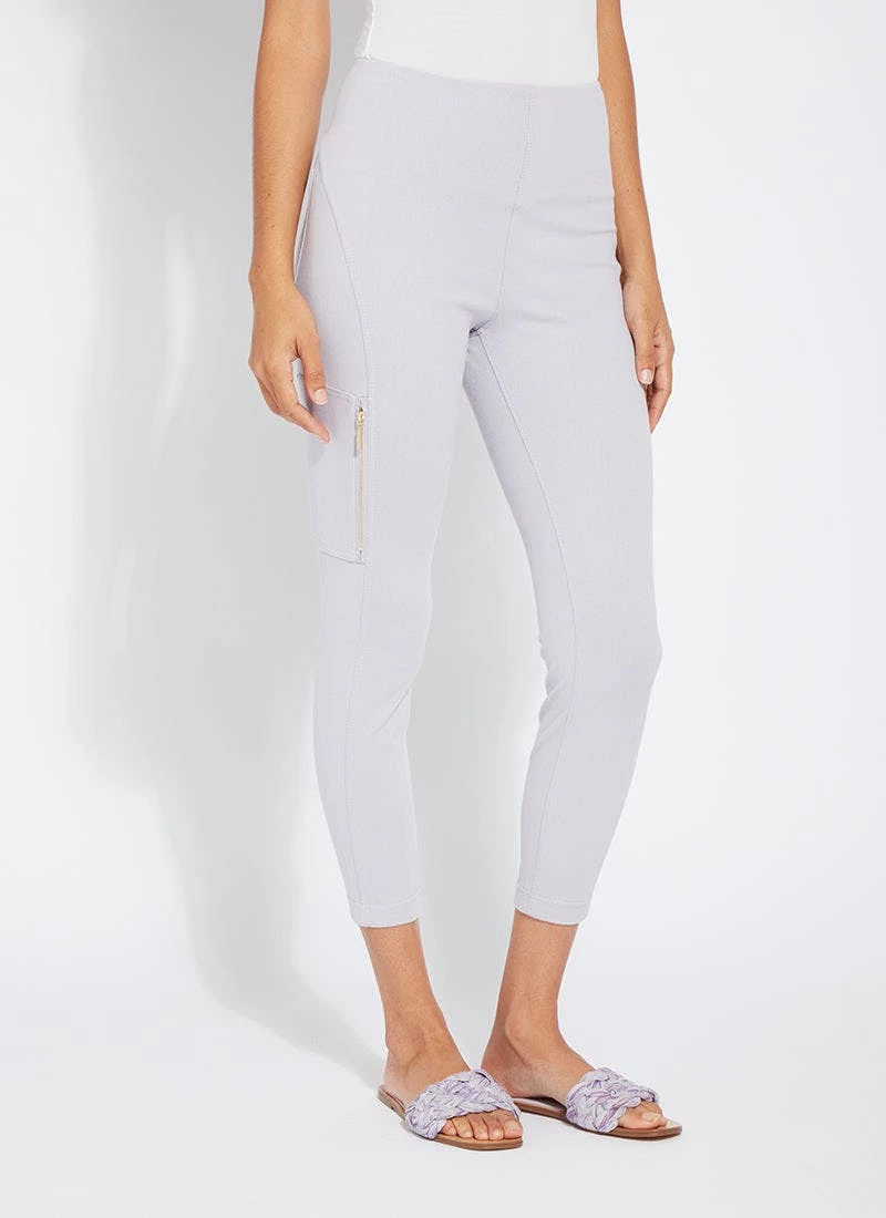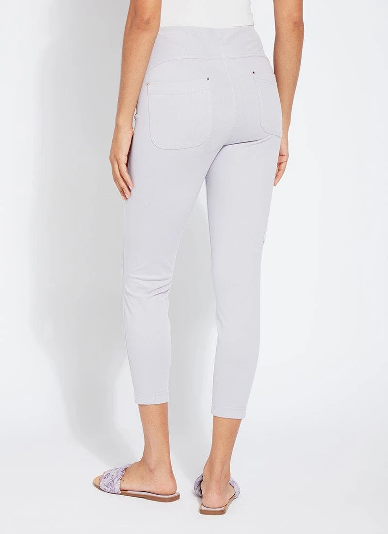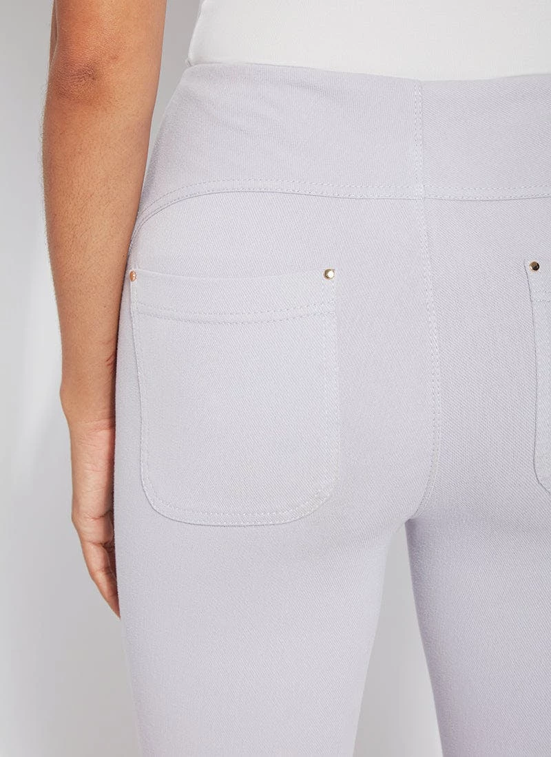Showcasing lean lines and crafted from 4-way stretch knit denim, our weekend crop with pocket offers pull-on styling; anatomical seaming that lifts and contours; back patch pockets with metal studs; and a concealed patented waistband for your most flattering fit. The right outer thigh features a handy, utility patch pocket with a high-shine, light-gold zipper closure. Partner these body-hugging crops, in off white, with our botanical boatneck sweater and braided nude sandals.
