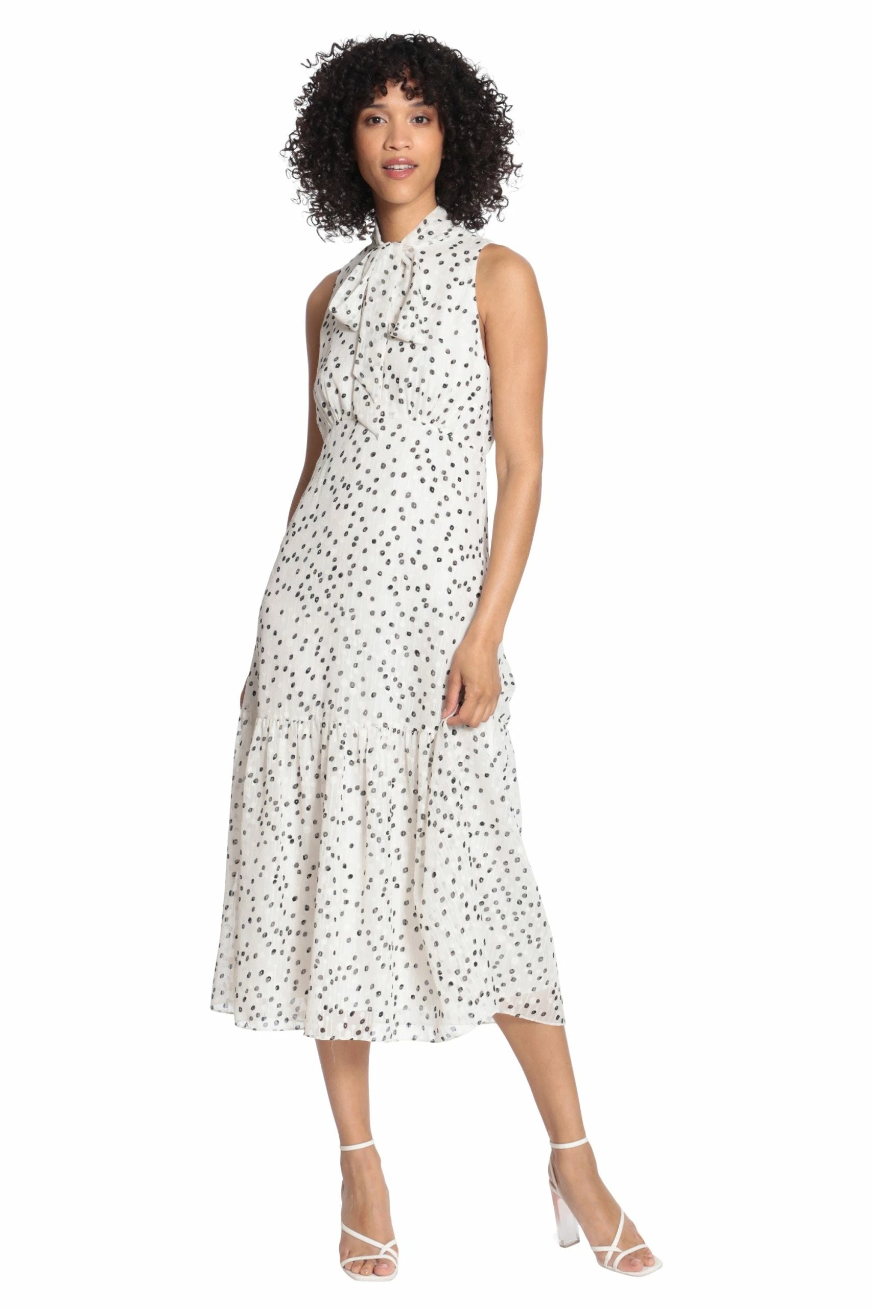 Layne is an adorable sleeveless midi, perfect for summer days. We adore her empire seam, neck bow and tiered skirt.