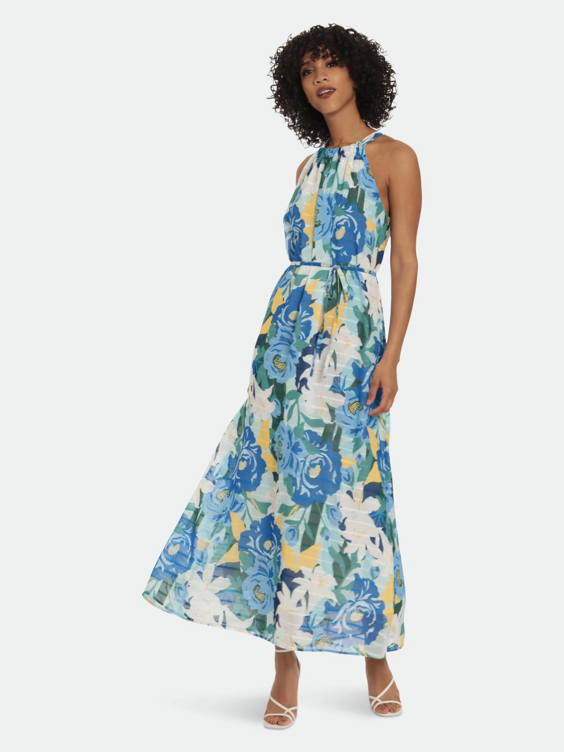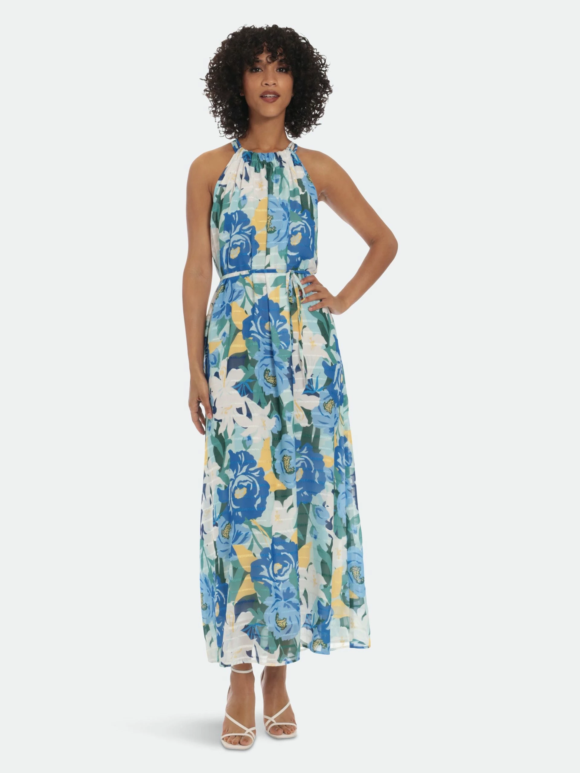 Tera is an update to our fan-favorite floral maxi. We adore her halter neckline and waist tie.