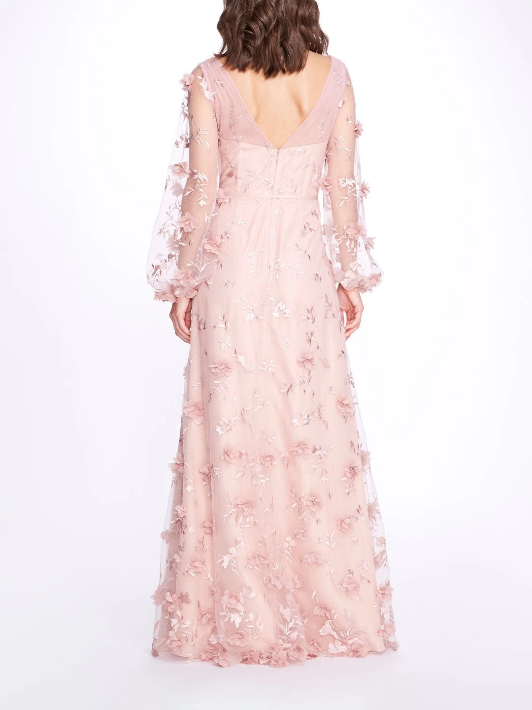 The Avellino gown is a romantic option for any occasion. Featuring a graceful illusion long sleeve, amorous 3d flower appliques and a stunning ribbon at the waist.