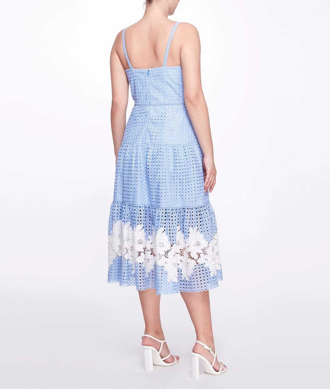 The embodiment of delightful daywear, The Guipure Midi Dress in dusty blue features a tiered a-line silhouette, sweetheart neckline, and bold white floral border detailing to create a stunning contrast. Gorgeous in guipure, it’s the quintessential addition to any chic wardrobe.