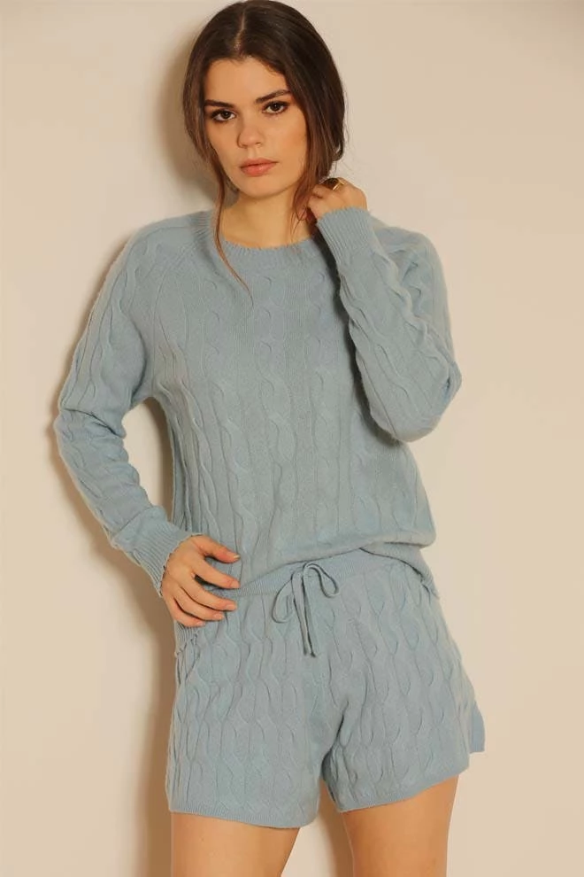 Whether you’re staying in or going out, our cable knit shorts will be your warm weather favorites. Knit with the coziest cashmere, and a relaxed fit. Effortlessly cute and made to mix and match with any of our cashmere cable tops!