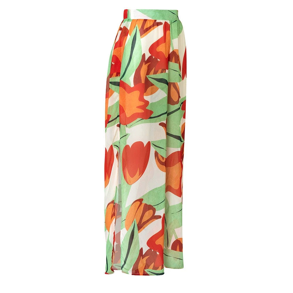 – Wide-leg trousers with side slits in cotton- Collection beach village