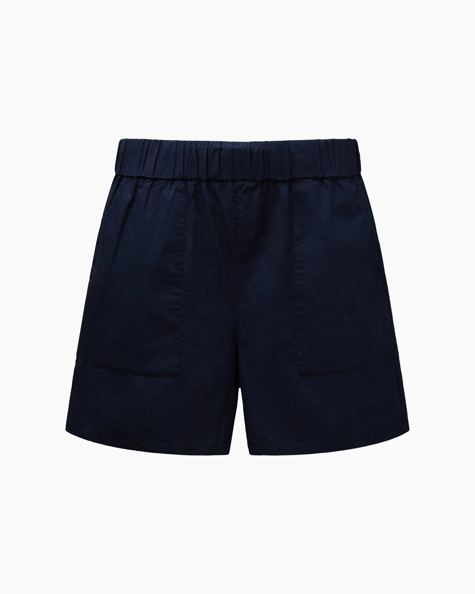 This pull-on Home Short is made in soft cotton poplin with an elasticized high waist and slash patch pockets.