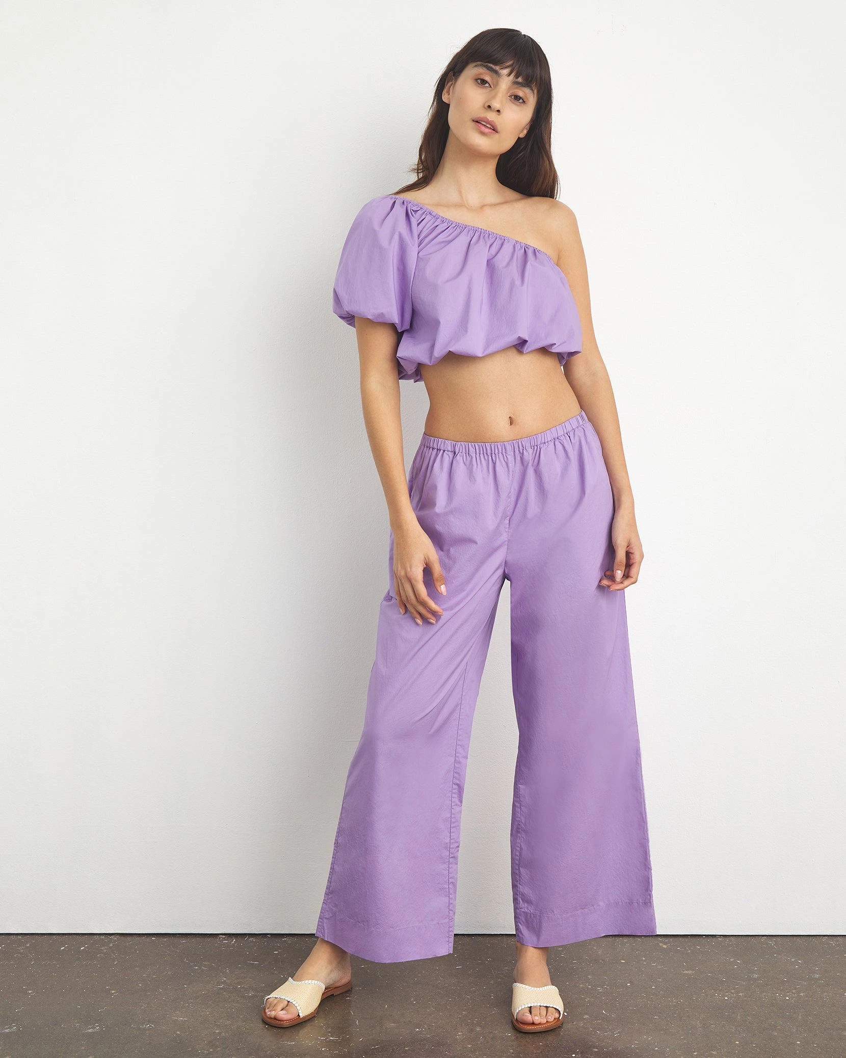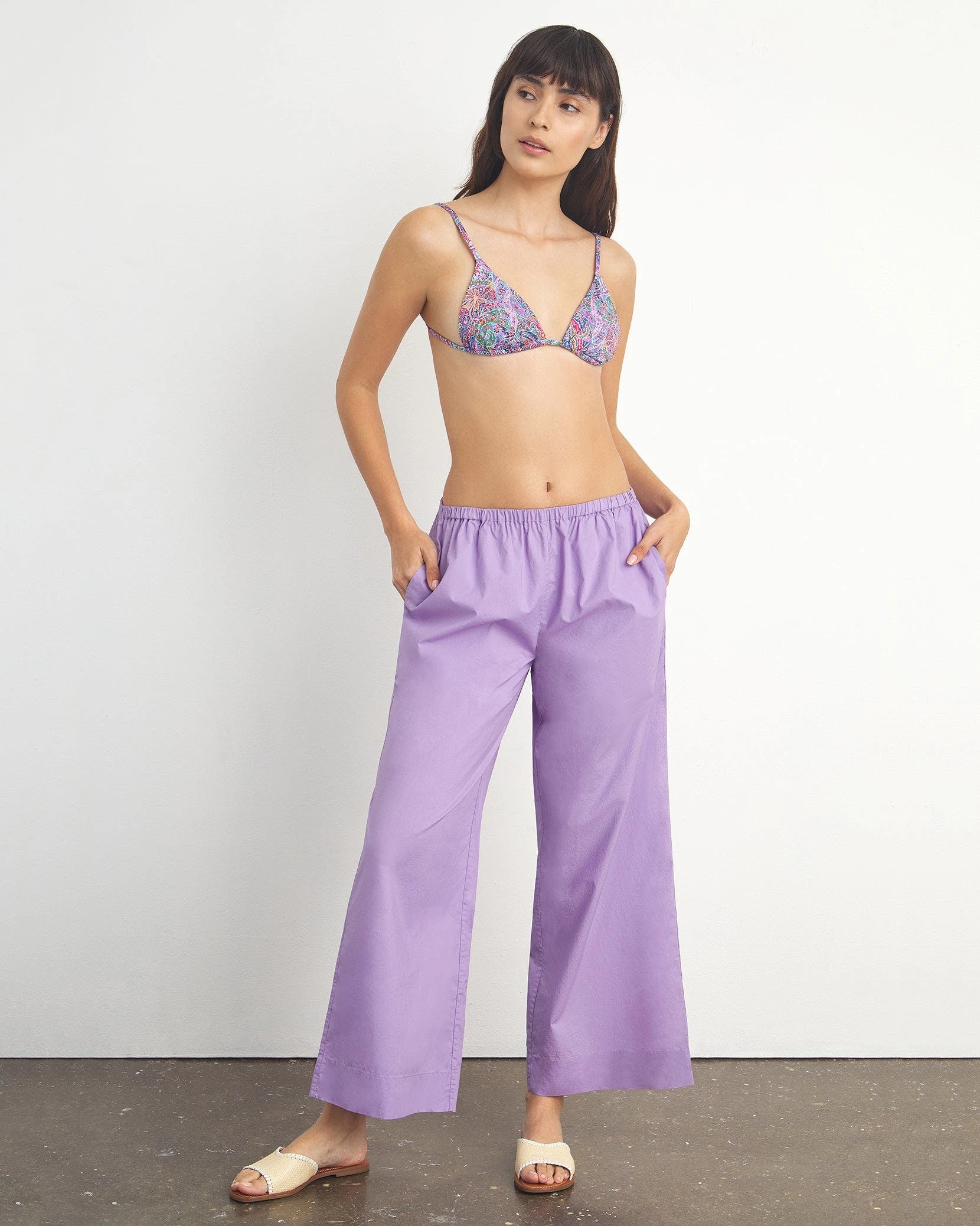 Taking a cue from classic resortwear, this poplin pant is cut in a breezy, wide-leg silhouette that pulls on and sits at the natural waist. Finished with on-seam pockets, it’s perfect layered over a matching swimsuit or paired with a lightweight top in the same fabric.