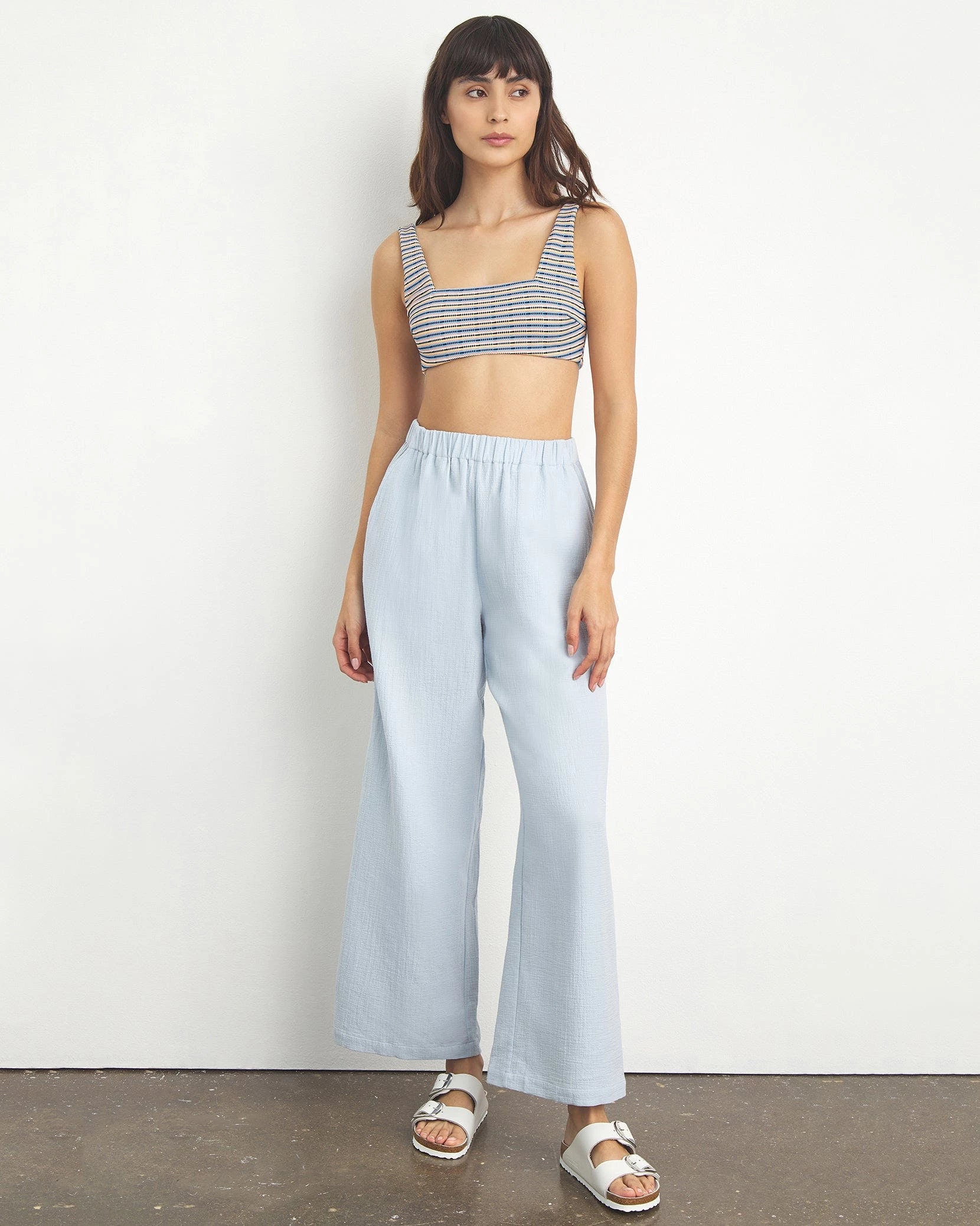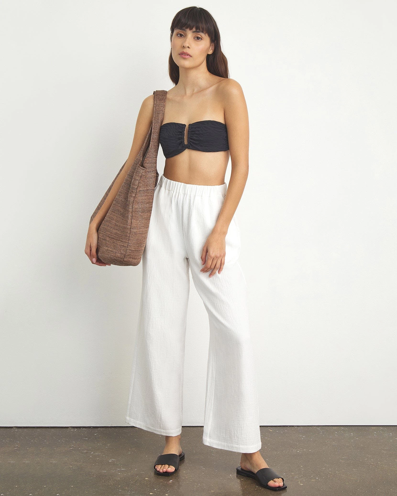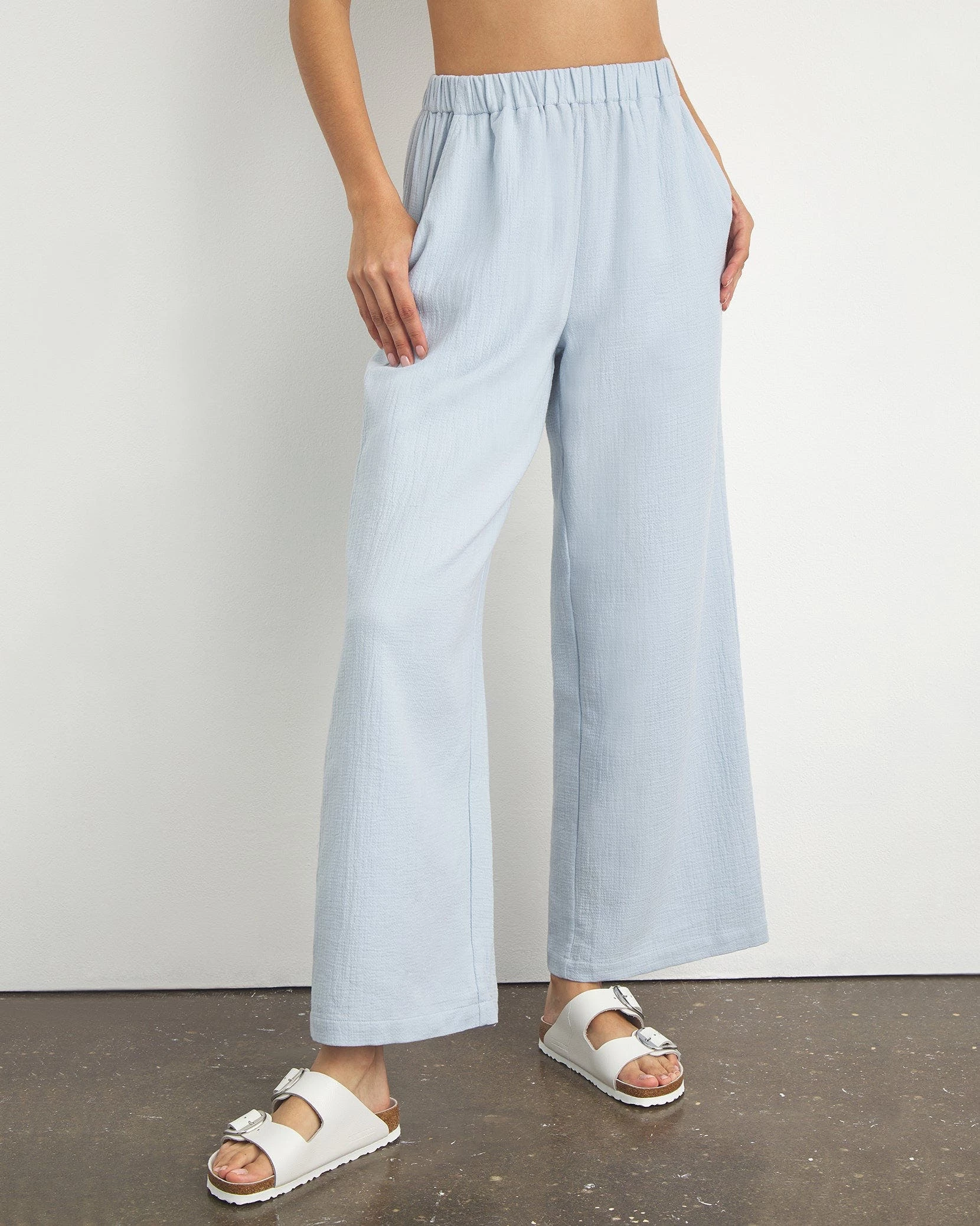 Made of lightweight gauze fabric, this wide leg pant is great for slipping on at the beach or wherever leisurely warm-weather days take you. it’s cut for a relaxed fit with slash side pockets and a pull-on elasticized waistband for comfort.
