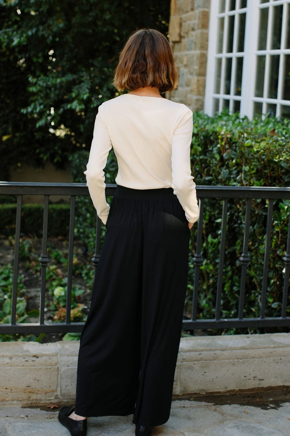 The Casper pant is made in our signature modal jersey. It features a high elastic waist, pockets, and wide legs. Wear it with a t-shirt and sneakers for a casual everyday look, or dress them up with a pair of elevated flats and a turtleneck. These are the comfiest softest pants ever!