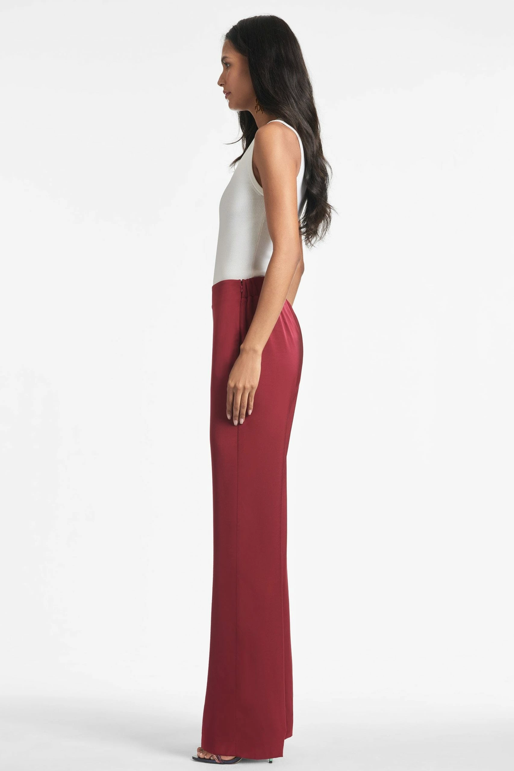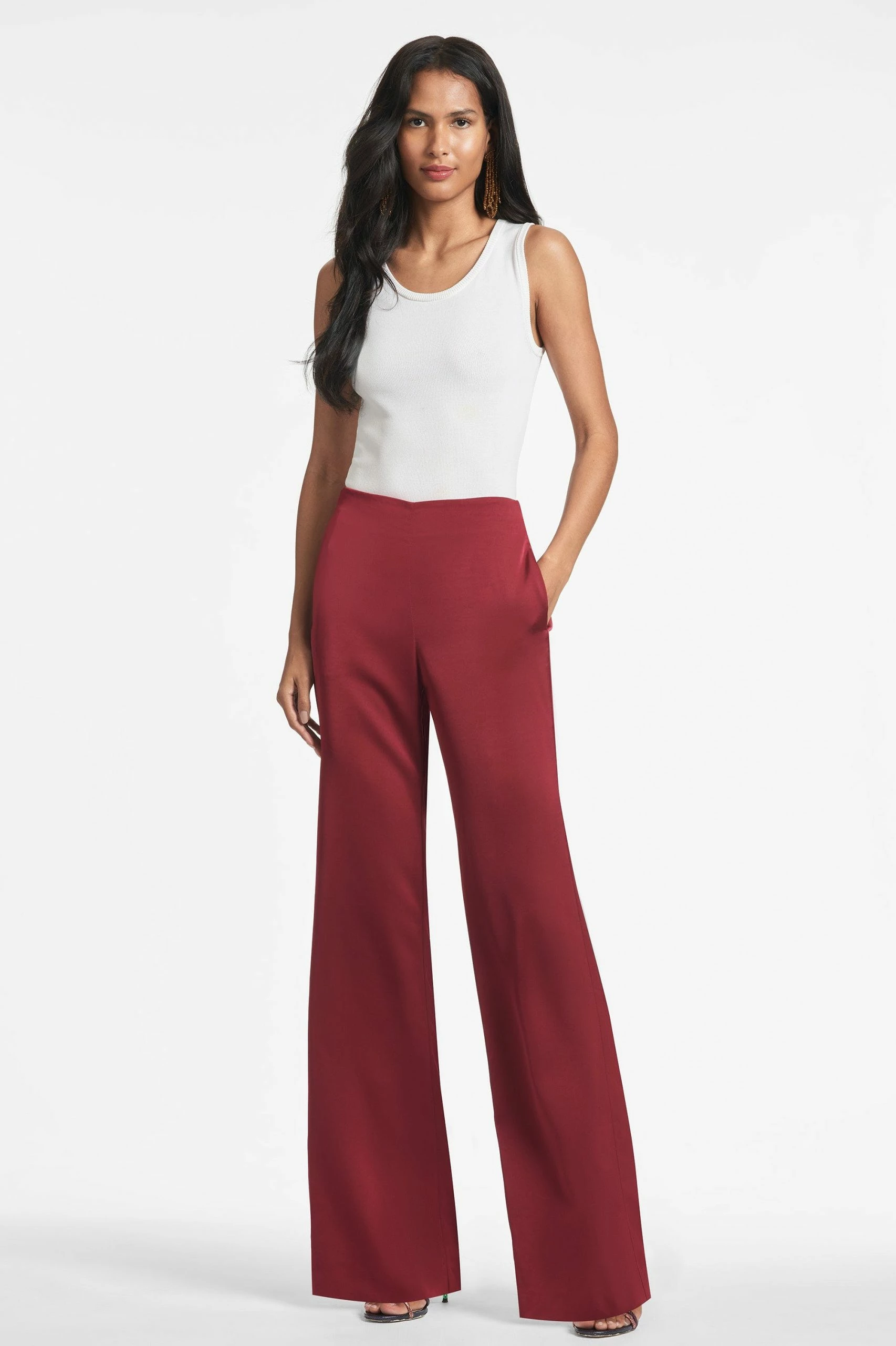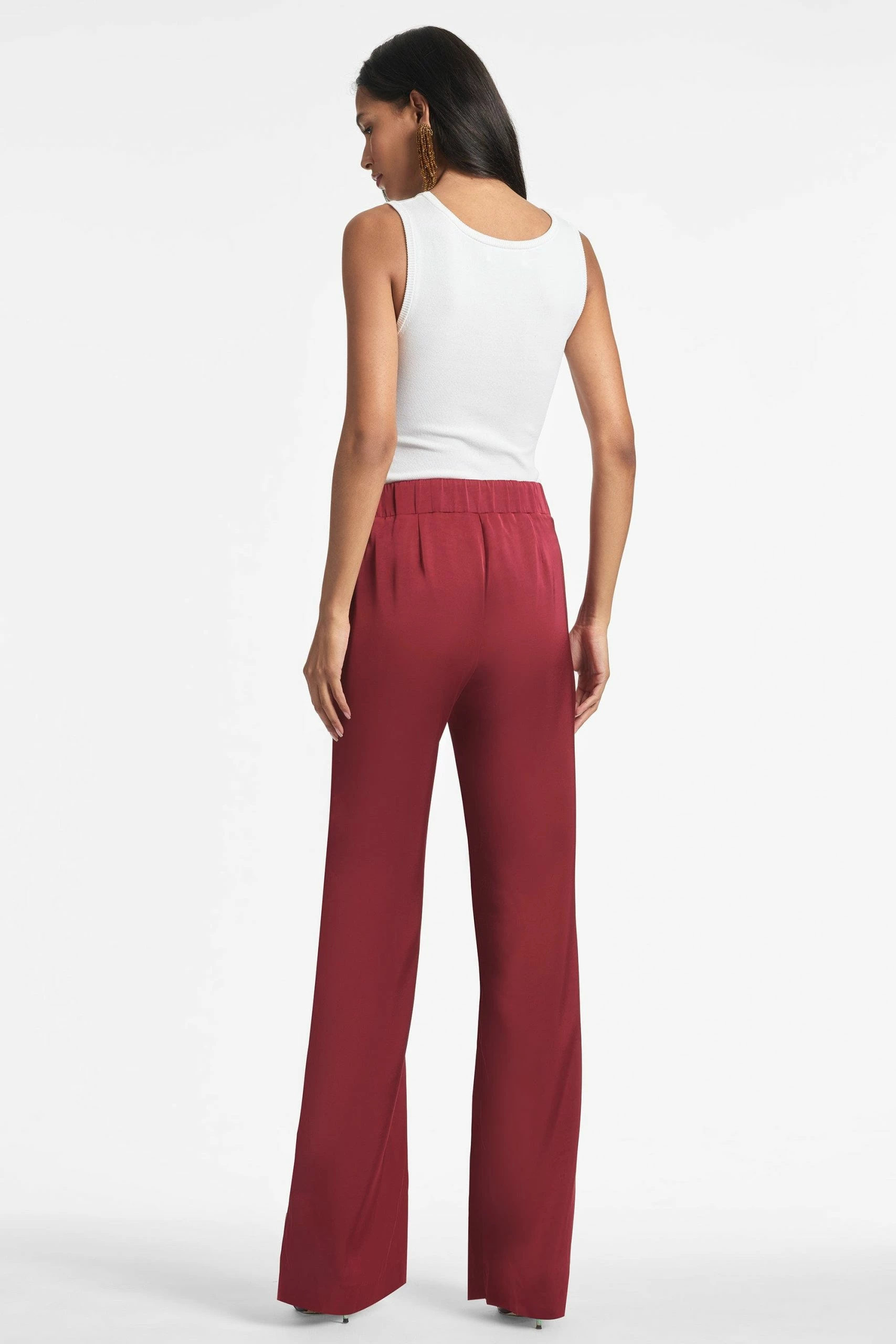 Alli is the ideal evening pant. An easy, chic wide-leg trouser shape is featured in satin crepe for an amazing drape. The flat front pant has concealed elastic at the back for a more comfortable fit. Perfect back to your favorite “date-night” tops or and knits.