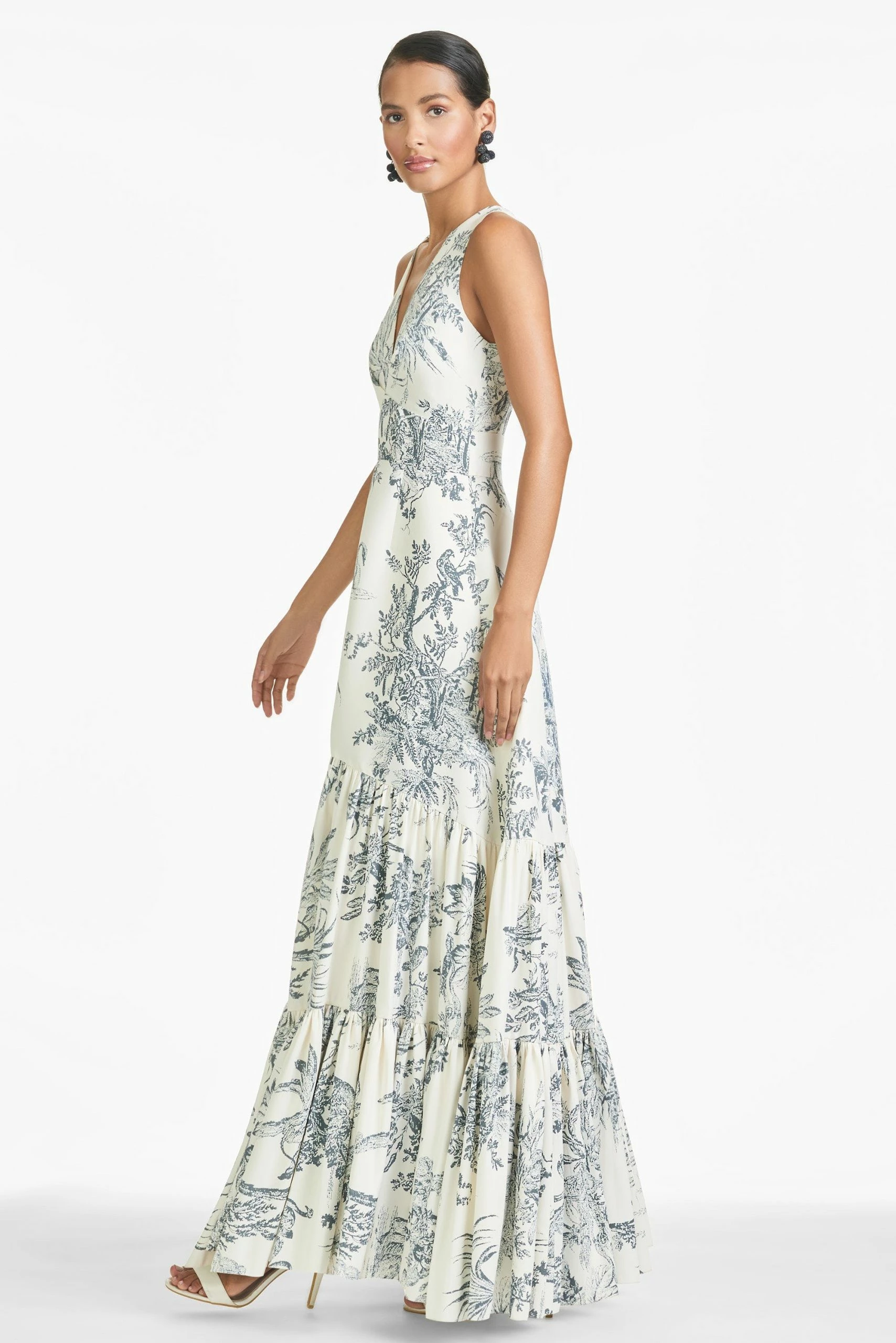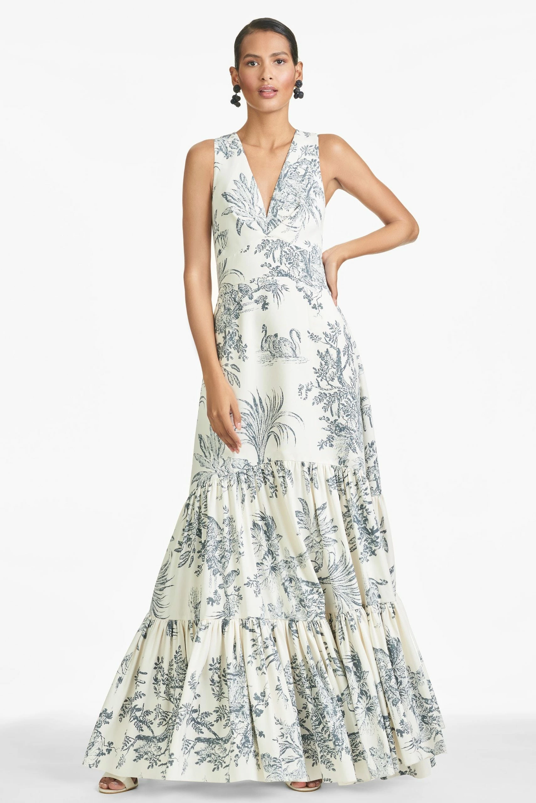 Rori is not for those looking to blend, she is a showstopping conversation piece. A clean a-line silhouette with deep v-neckline is punctuated through tiers of a grey & ivory toile pattern. Sachin and babi believe in celebrating every day, dressing with joy, and creating clothes that inspire beauty and confidence. Here’s to the moments make, and the moments that make us. Cheers!