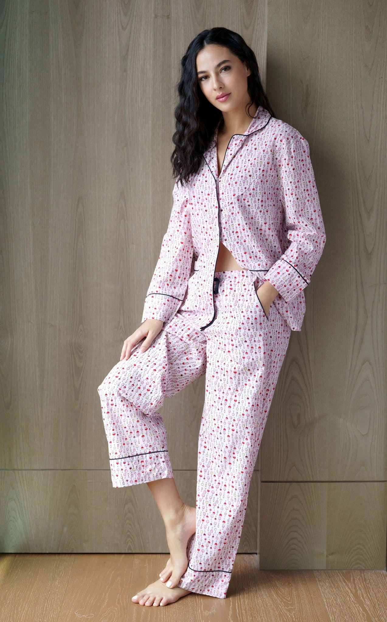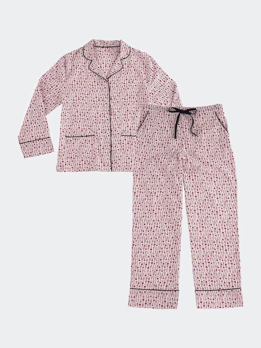 Nothing is better than slipping into Shiraleah’s hope PJ set before a blissful night’s sleep. This set features a lively wine glass print upon a blush background and black detailing along the lapels, pockets and hemline which makes it the perfect set for every wine lover. Designed with comfort in mind, this set is made from cotton, features a drawstring waistline and packaged ribbon wrapped, making it the perfect gift option. Pair with other items from shiraleah to enhance your bedtime solace.
