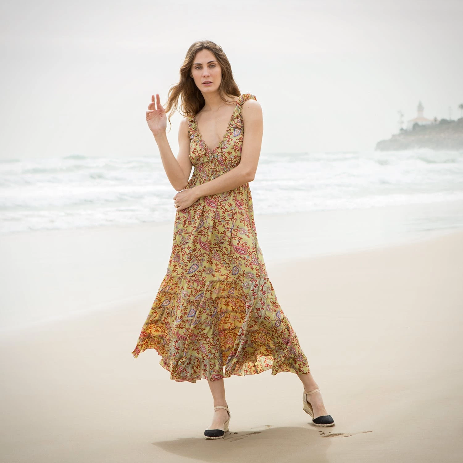 This sohuman long dress with printed figures is 100% handmade. This design is so comfortable and stylish. It goes perfectly with white earrings and platforms. You can wear it at any social event and make you feel unique and stand out from the crowd. Additionally, the fabric and materials we use are environmentally friendly. Sohuman brand will make your everyday outfit stylish and unique.Don’t forget to see our whole collection to complete your look or create new ones!