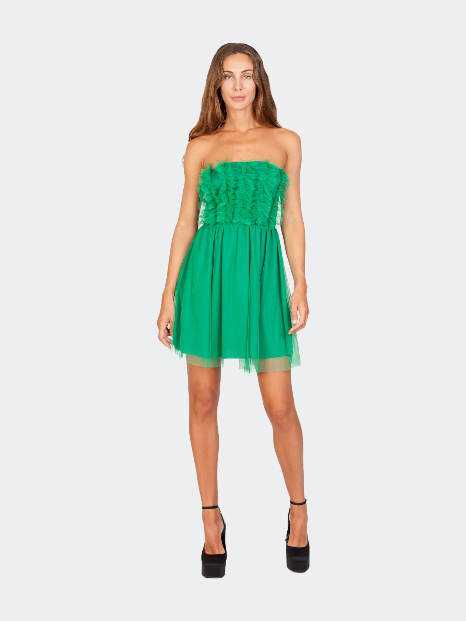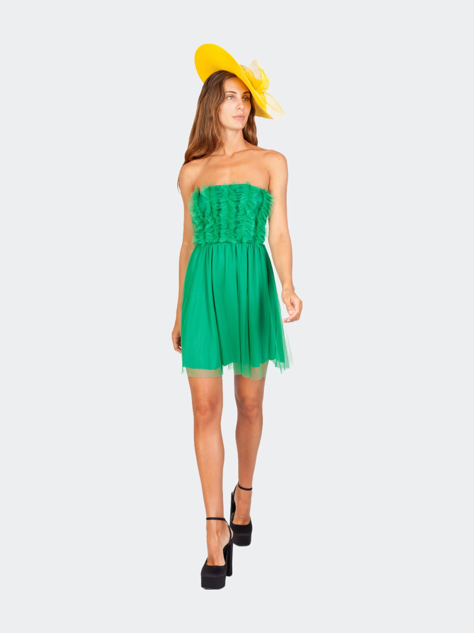 Playful, casual or elegant? You don’t have to choose, because the Sohuman Keira Green Tule Mini Dress can be styled in many different ways to create your dream outfit. Combine the dress with a pair of high heels and a statement purse to make you stand out from the crowd. The fabric and materials used are environmentally friendly. Don’t forget to have a look at the full collection to complete your look.