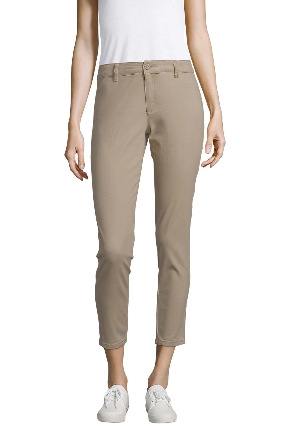 – Flat front.- Zip fly with button over.- Belt loops.- 7/8 length.- Two rear mock jetted pockets.- 98% Cotton Twill/2% Elastane..- Gender: Women