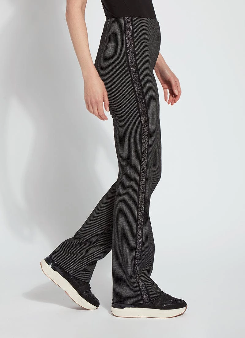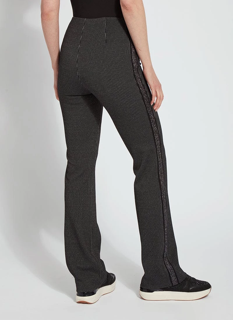 Skimming the hips and thighs before falling into fit-and-flare leg, the Striped Elysse Pant Pattern features a concealed patented waistband, 4-way stretch Ponte Jacquard fabric, front pin tucks, side pinstripes with trim tape, and classic styling. Created using a tightly woven Ponte Jacquard, these work or leisure pants feel snugger than Lysse’s Ponte version, so size up if you’re in between sizes. Showcase them, in York Pinstripe, with a fitted mock sweater, stretch denim blazer and heeled leather mules.