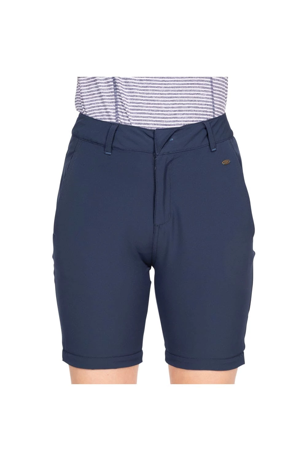 – Mid-rise flat waist with belt loops