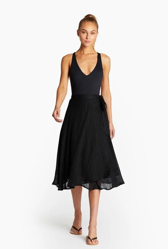 A wardrobe staple. The always flattering midi length wrap skirt.