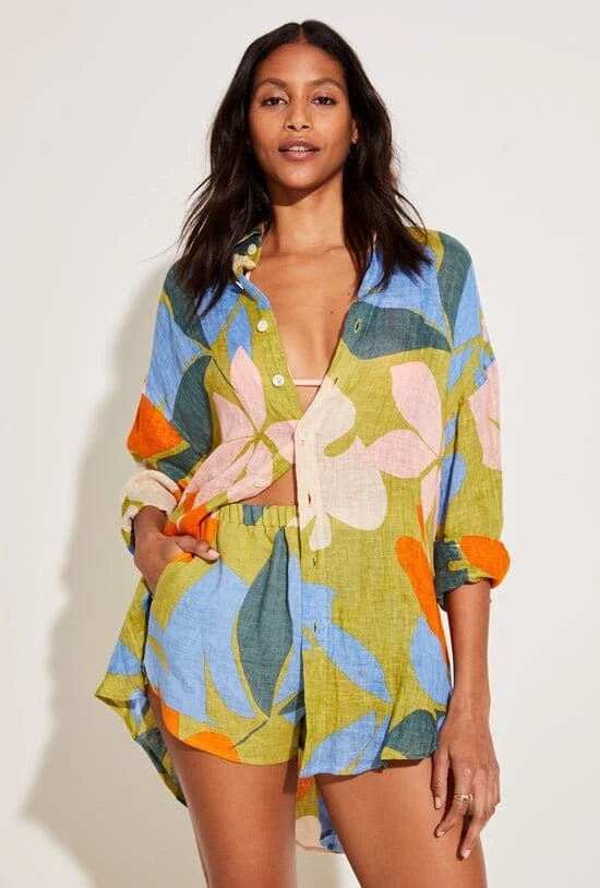 An easy pull-on linen short made for pairing. Elastic waist, side vents. Wear high or low. for a breezy oversized fit, size up.Make it a cabana set. Pair with this classic playa linen oversized shirt.