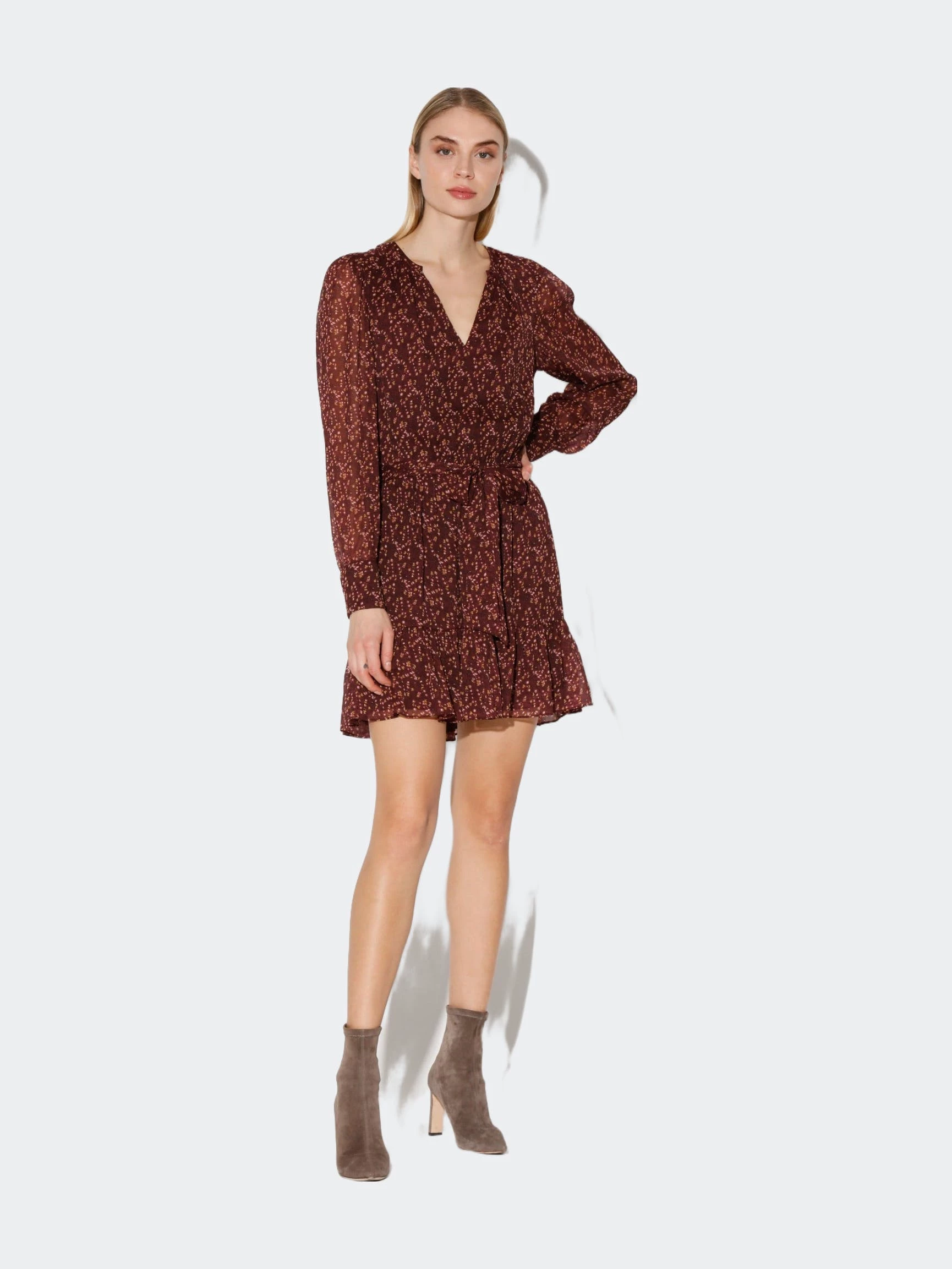 Flirty ruffles in a fun floral make the Leighton Dress the perfect mini to go from day to night.