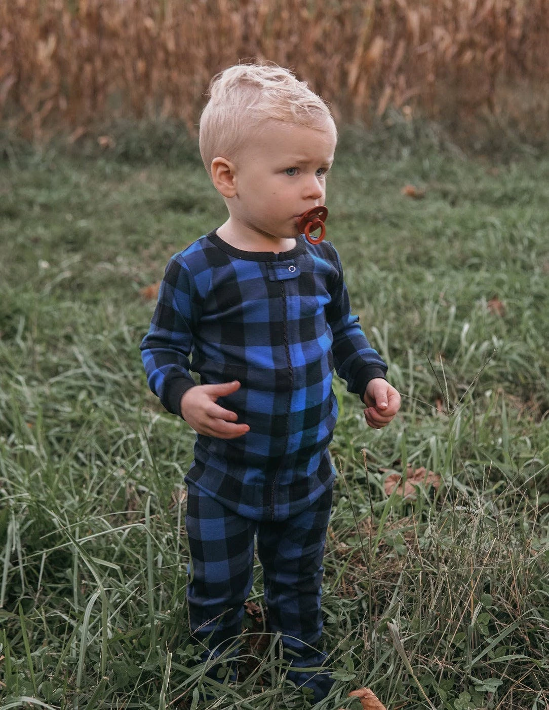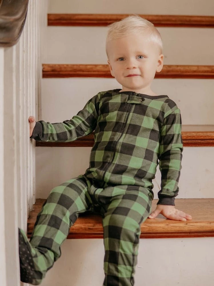 Keep your little ones cozy and comfortable this winter season with our lightweight baby footed plaid pajamas. They come in four color varieties, sure to make the whole family happy. These pajamas are made from 100% natural gots-certified cotton and do not contain fire retardant chemicals so that they will fit snugly for safety. If your little one likes their pajamas looser, please order one size up. to keep the deep-toned plaid vibrant, please wash inside out and in cold water. Our comfortable onesies are tag-free and feature a full-body zipper and top button closure for easy changing. They also feature grips on the footies so your little one won’t slip on their adventures. The baby footed plaid pajamas come in all sizes so the whole family can have a pair!