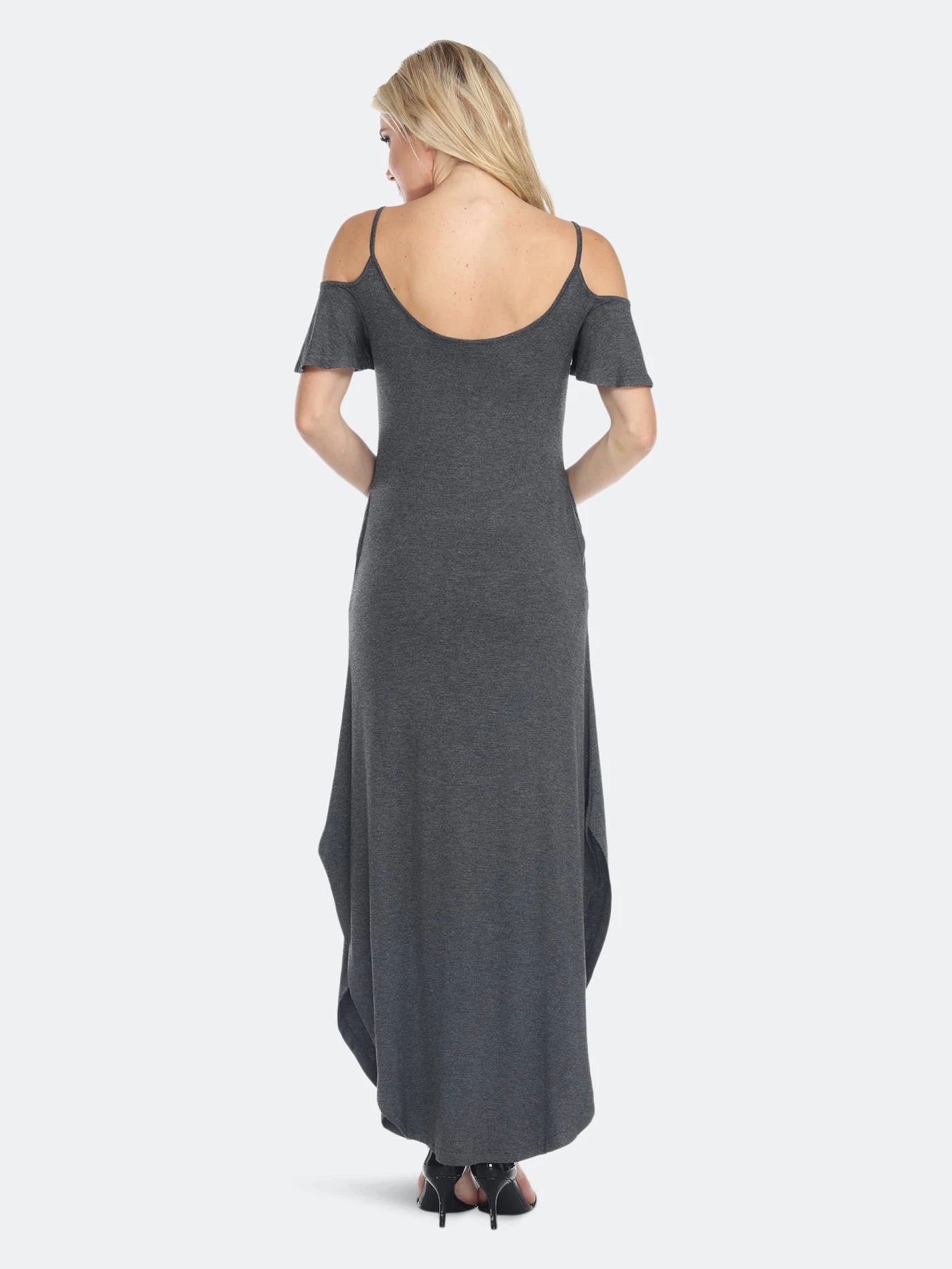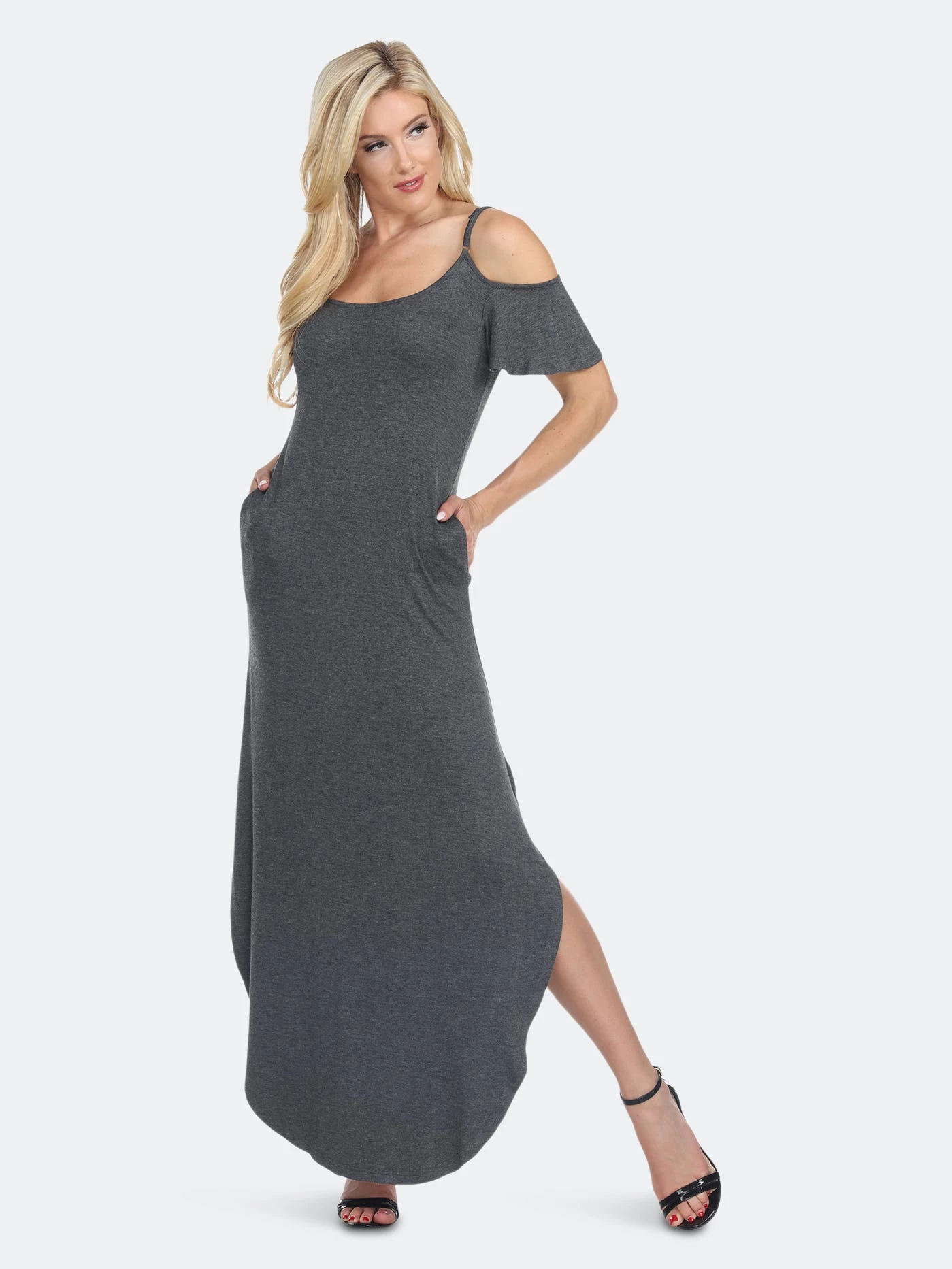 This beautiful maxi by white mark features cutout shoulders and side pockets. With a double slitted , flowing skirt and comfortable fabric, you’ll never want to take off this versatile dress.
