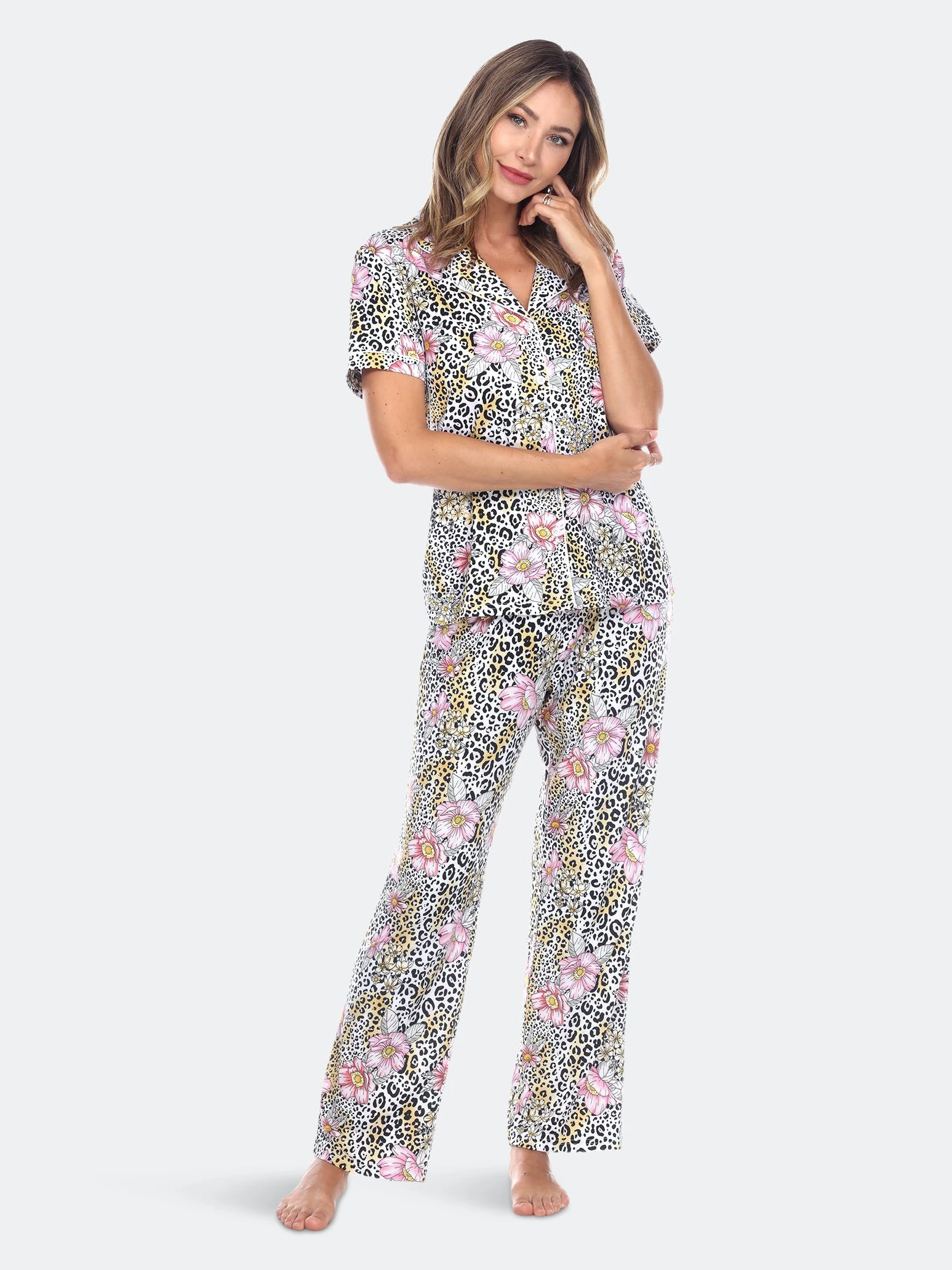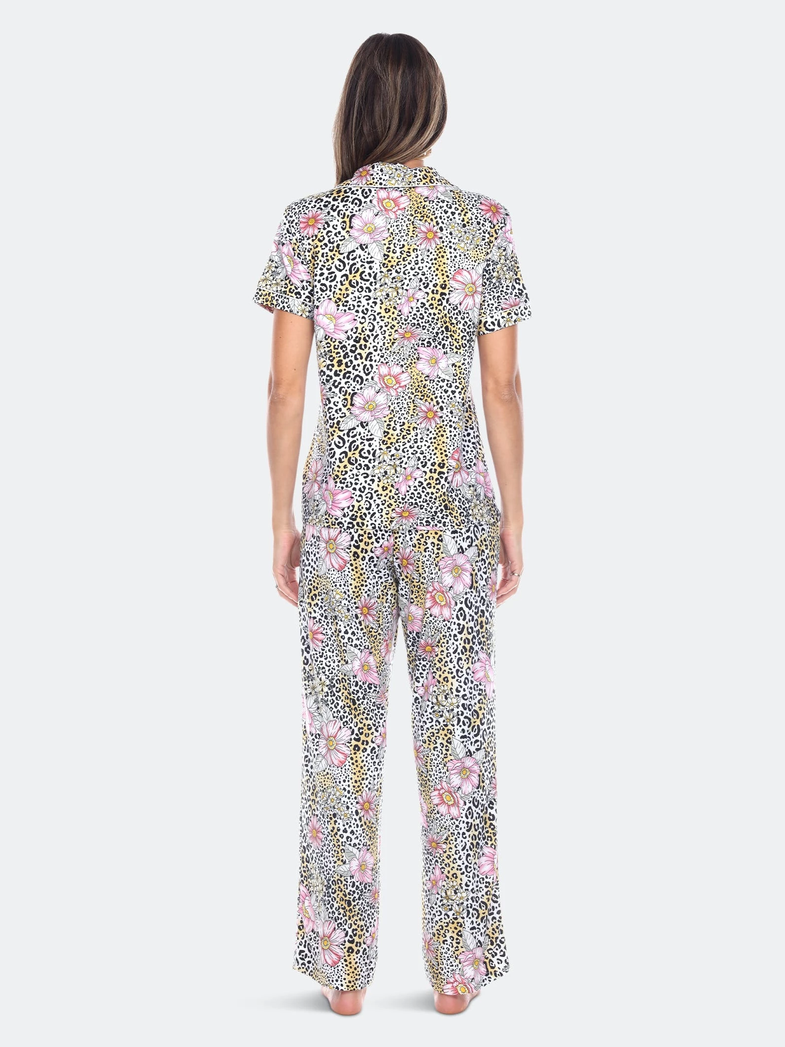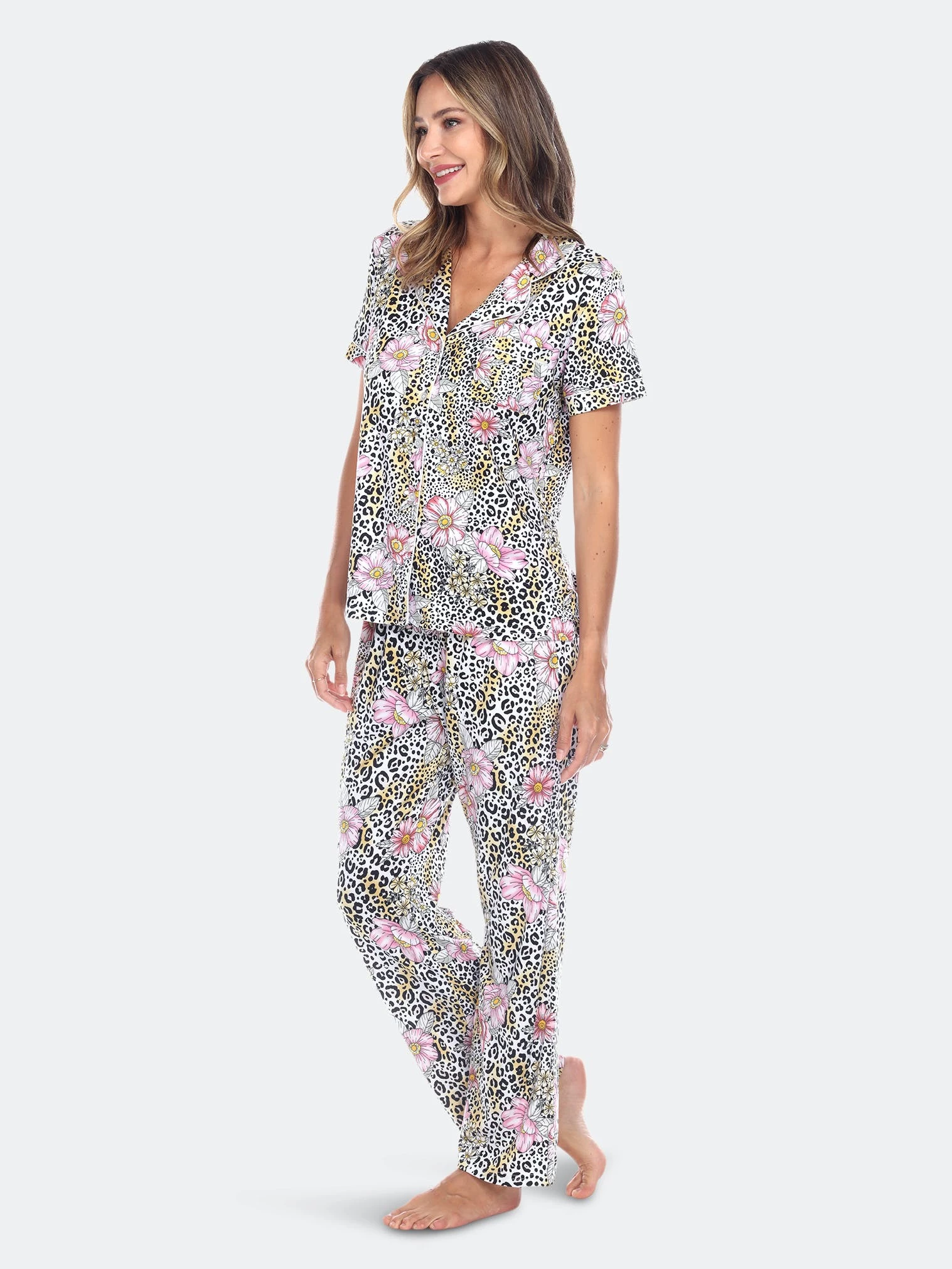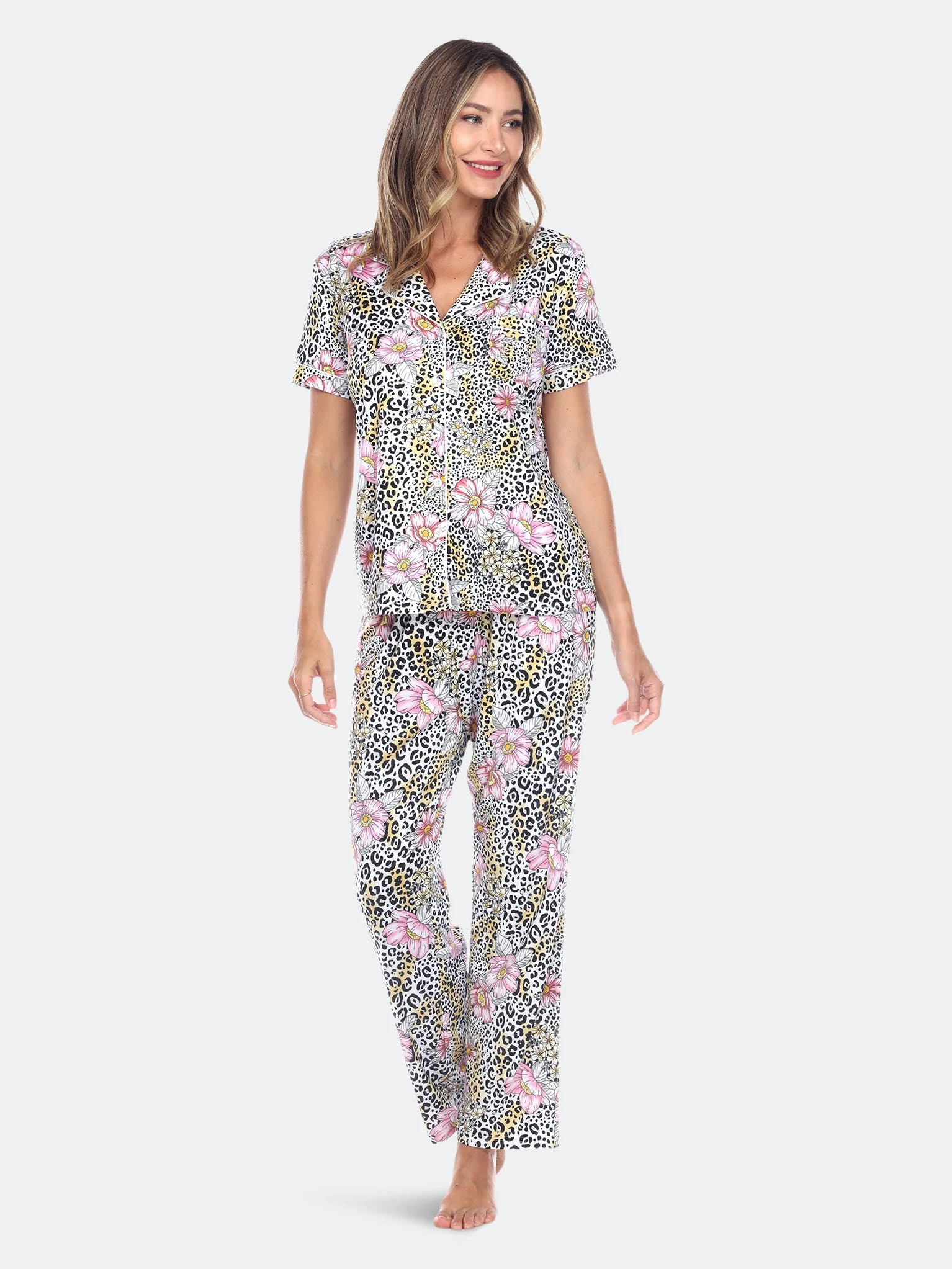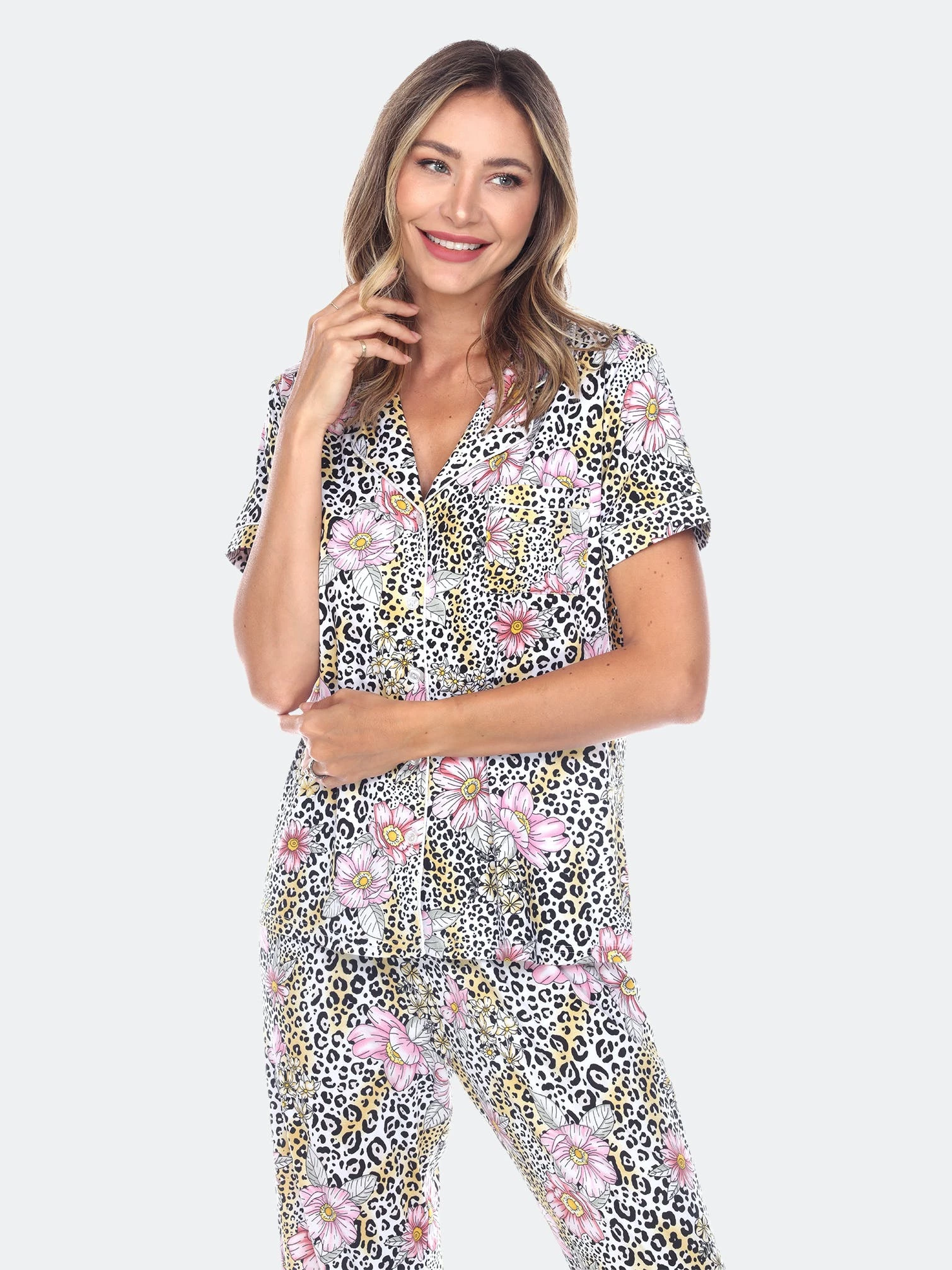 Sweet dreams start with cute pajamas — this short sleeve and pant matching pajama set is great for comfortably lounging on lazy weekends or getting ready for a night out.